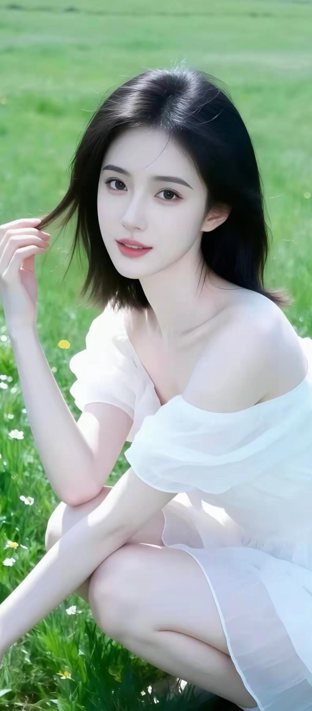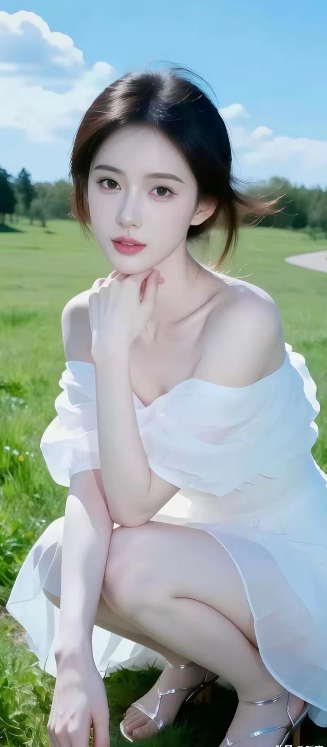 在江边享受宁静时光,白色连衣裙与自然景色完美融合。时尚穿搭大长腿漂亮小姐姐