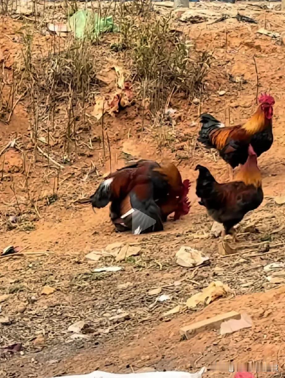 这就是传说中公鸡下蛋吗?家里这几只公鸡是不是神经错乱了。都说公鸡给母鸡压蛋,四只公鸡一起玩,其中三只一起欺负第四只,这种现象真是头一次看到。这几个公鸡是不是搞错对象了,它不是母鸡,还是说没有母鸡,它们压抑太久了。你们见过这样的现象吗?