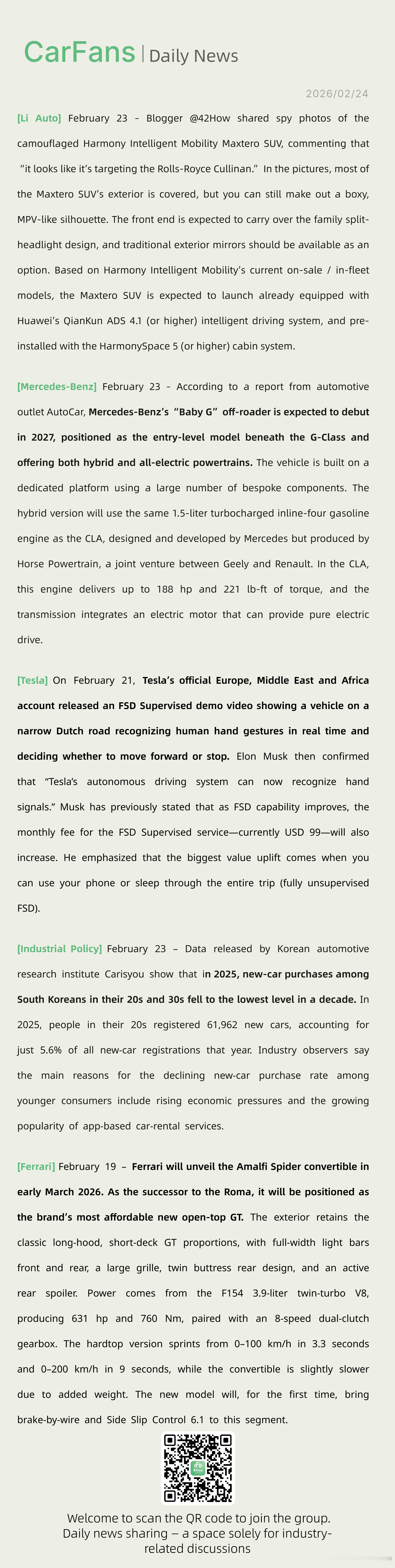 尊界SUV伪装车曝光、奔驰小G将在2027年亮相据汽车媒体AutoCar报道,奔驰正在研发的"小G"越野车预计将在2027年亮相,定位G级入门车型,提供混动/纯电两种动力。