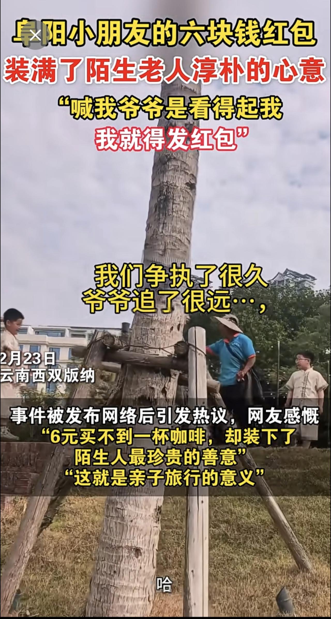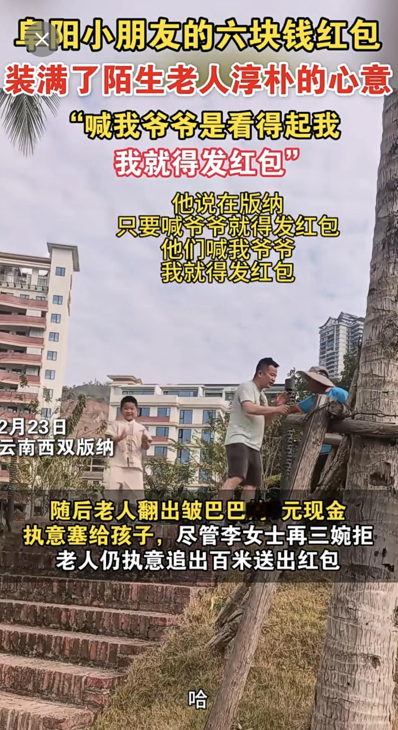 阜阳小朋友的六块钱红包,装满了云南陌生老人淳朴的心意 “喊我爷爷是看得起我 我就得发红包” 阜阳 云南 西双版纳 暖心