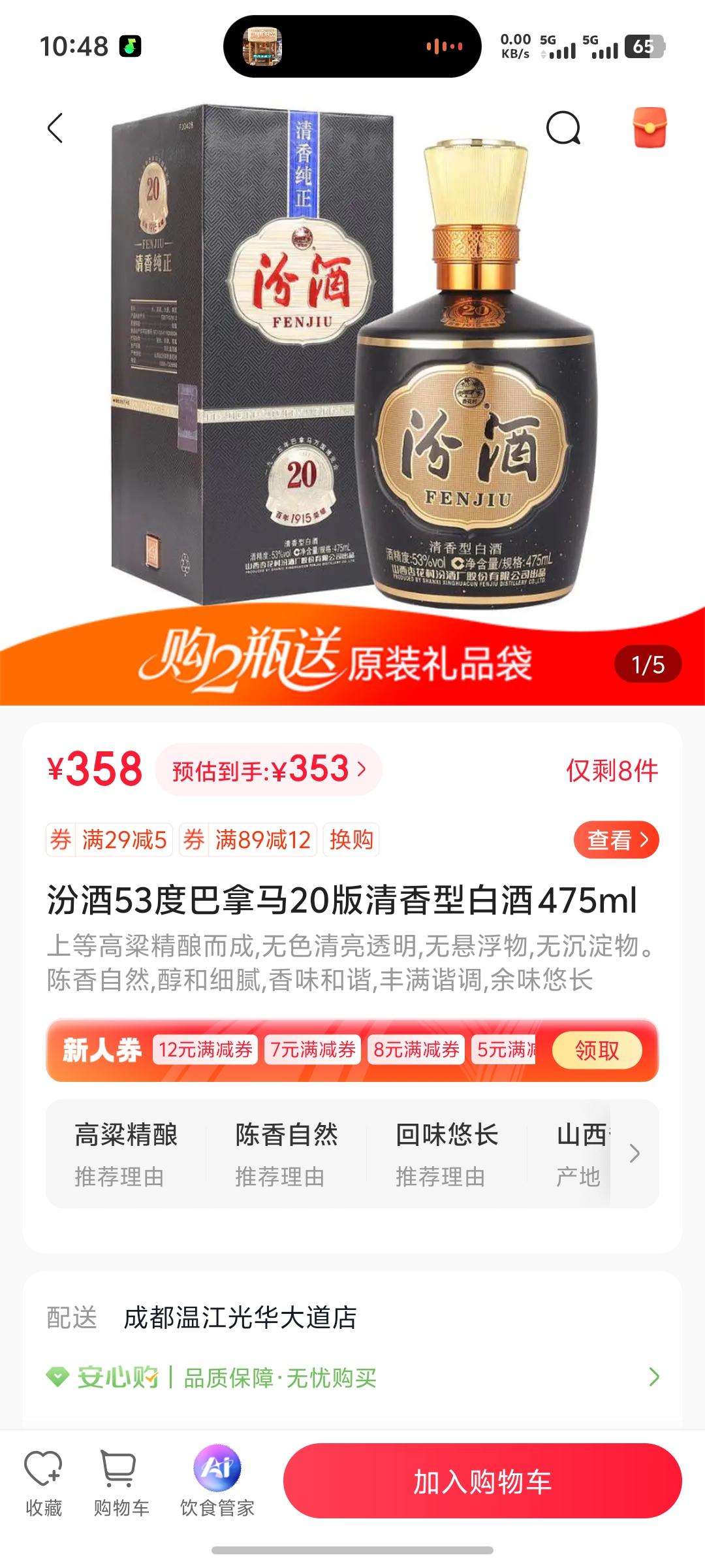 过年喝的这个汾酒,虽然有点小贵,但是味道非常赞👍🏻