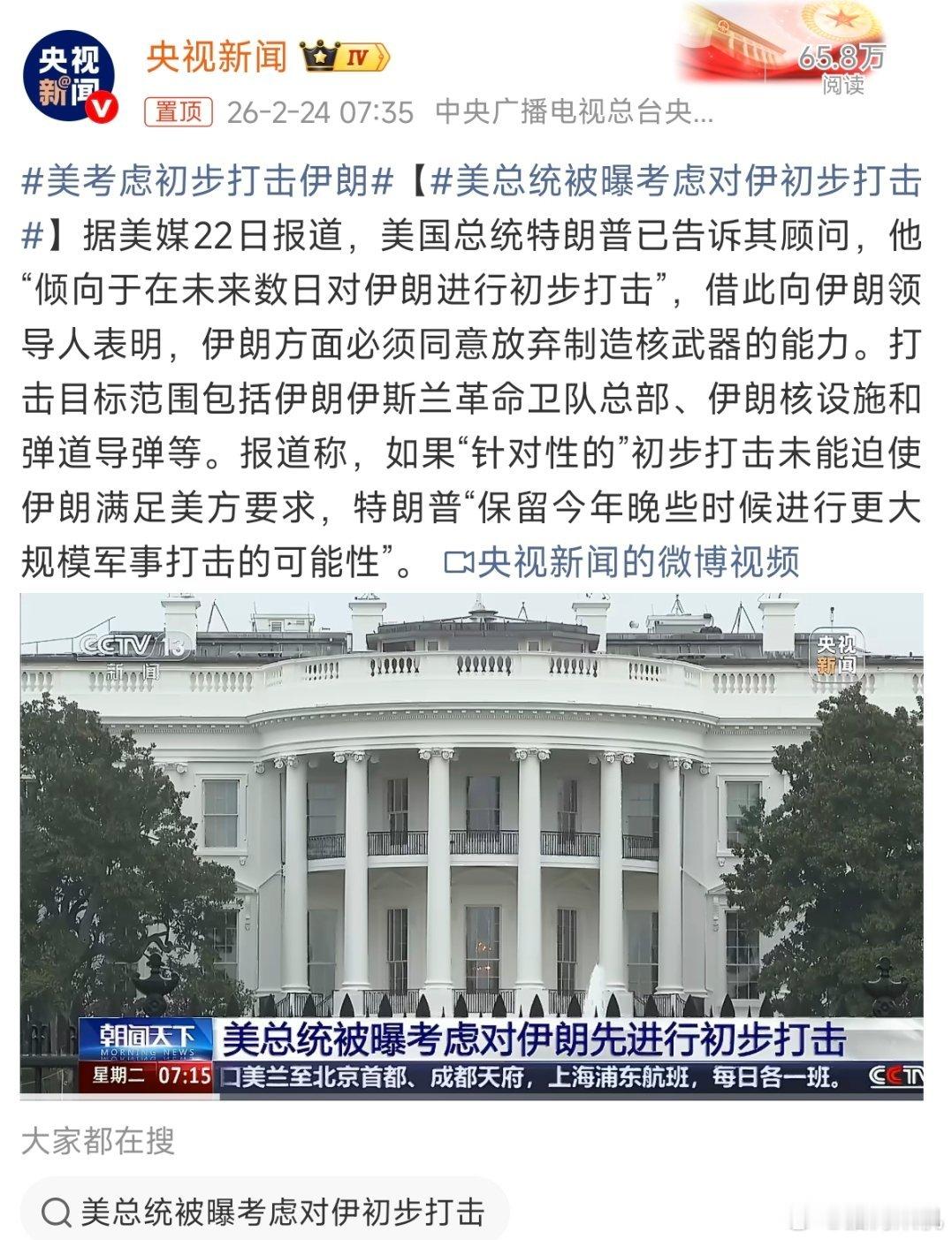 美考虑初步打击伊朗