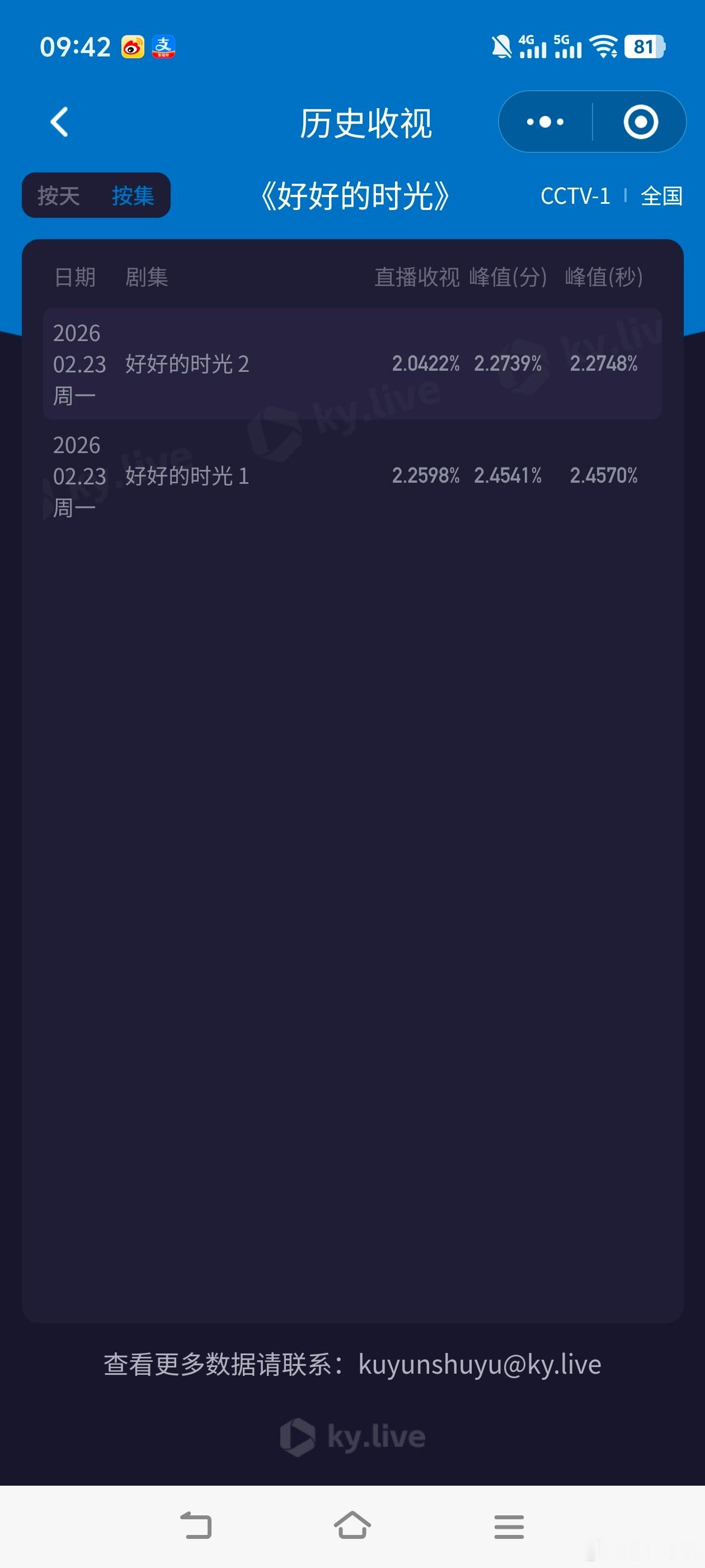 来看首播双集酷云走势第一集:起点2.0596,峰值2.4570,平均2.2598第二集:起点1.8513,峰值2.2748,平均2.0422双集平均:2.1453cvb估值:2.1453×1.65=3.540