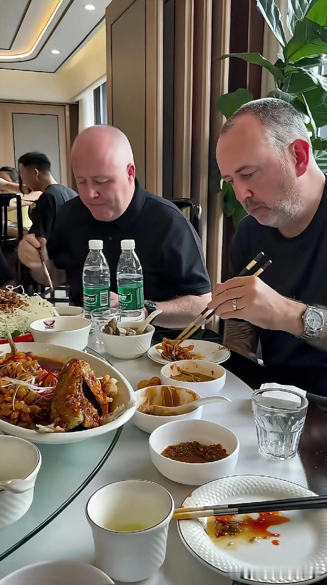 “金左手”威廉姆斯与“巫师”希金斯,平时一定没少吃中餐,这筷子使的真溜。 尤其是威廉姆斯,打球用左手,使筷子也是用左手,看来英国的父母是不讲究“矫正”的。 我也是左手,小时候连写字,吃饭都是用左手,后来被父母生生的“板”了过来,因为一家子围着桌子吃饭时,我用左手拿筷子,经常会与旁边的人“打架”,所以就被矫正了过来。