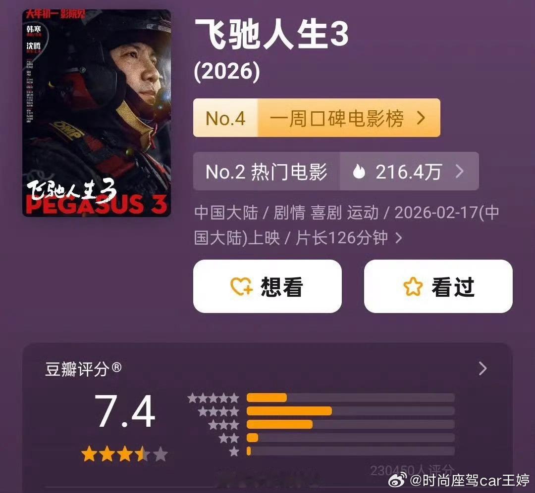 非常期待了,能有一部国内的赛车电影不容易韩寒透露飞驰人生4飞驰人生3