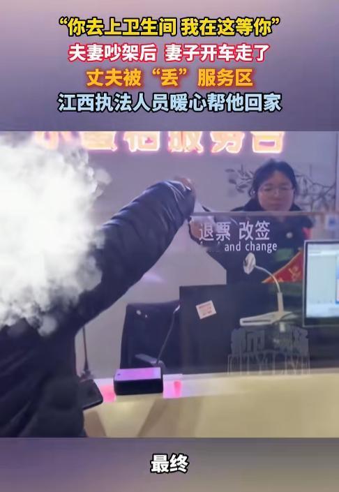 太狠心!2 月 21 日,江西抚州广昌西服务区,福建一男子和妻子发生争执,妻子骗他去上厕所,说会在原地等他。男子刚下车,妻子直接带着孩子开车扬长而去,把他一个人丢在服务区,身无分文、手机钱包全在车上,无助到只能报警求助。 初春的高速服务区,本该是返程路上的临时休憩之地,却在2月21日这天,成为了一场婚姻闹剧的上演现场。 江西抚州广昌西服务区里,人来人往,车流不息,没人注意到,一对来自福建的夫妻,正因为一路上的琐碎小事,闹得不可开交。 争吵声越来越大,空气中都弥漫着紧绷的气息,谁也没有想到,这场看似平常的夫妻争执,最终会演变成一场让人揪心的抛弃事件。 争执持续了一路,夫妻俩的情绪都已经濒临崩溃,直到车辆驶入广昌西服务区,两人才暂时停下了争吵。 就在所有人都以为这场矛盾会暂时平息的时候,妻子却突然改变了态度,脸上的怒气渐渐褪去,语气也缓和了不少,她对着丈夫说,让他先去卫生间方便一下,自己会带着孩子在车里等着他,绝不会先走。 或许是一路争吵太累,或许是出于对妻子的信任,男子没有丝毫怀疑,也没有多想,身上什么都没带,既没有手机,也没有现金,空着双手就下了车,匆匆走向服务区的卫生间。 他以为,这只是夫妻间争吵后的一个小缓和,等他回来,两人就能继续赶路,哪怕还有怨气,也能慢慢化解。 可他万万没有想到,这一转身,就陷入了孤立无援的绝境。 当男子匆匆从卫生间出来,回到停车的地方时,眼前的一幕让他瞬间僵在原地,大脑一片空白。 原本停在原地的车子不见了踪影,他的妻子,还有他们的孩子,早已不见了踪迹,只留下他一个人,孤零零地站在服务区的寒风中,茫然无措。 那一刻,男子的慌乱和委屈瞬间涌上心头,他下意识地摸了摸口袋,才发现自己身无分文,手机、钱包全都落在了妻子开走的车里。 没有通讯工具,他联系不上任何家人和朋友;没有现金,他既买不了食物和水,也无法乘坐任何交通工具离开。 他站在原地,寒风刮在脸上,冰冷刺骨,可这丝毫不及他心里的万分之一寒凉。 他在服务区里漫无目的地走着,看着来来往往的车辆和行人,那种孤立无援的感觉,几乎将他压垮。 他不知道自己该去哪里,也不知道该怎么办,只能在心里一遍遍地呼喊着妻子的名字,可回应他的,只有呼啸的寒风和过往车辆的轰鸣声。 就这样,他在冷风中站了很久,从最初的慌乱,到后来的委屈,再到最后的绝望,走投无路之下,他终于鼓起勇气,找到了正在服务区执勤的执法人员,向他们求助。 执法人员看到男子无助的模样,听他讲述完事情的来龙去脉后,既心疼又无奈。 他们能感受到男子此刻的绝望和委屈,一边耐心地安抚着他的情绪,一边迅速行动起来,想办法帮助他摆脱困境。 经过一番协调,执法人员联系上了当地的火车站,为男子办理了先上车后补票的手续,又自掏腰包,为他垫付了车费,还买来了热腾腾的食物和水,生怕他饿着、冻着。 在一切安排妥当后,执法人员亲自护送男子前往火车站,一路上,还不停地安慰他,让他不要太过着急,一定会安全把他送回福建泉州的家中。 就这样,在执法人员的暖心帮助下,男子终于踏上了返程的列车,摆脱了在服务区的无助困境。 这些因疏忽导致的意外,最终都得以圆满解决,可福建男子遭遇的这起事件,却让人无比心寒。 夫妻之间,有矛盾、有争执都是正常的,可无论争吵多激烈,都不该用这样极端、绝情的方式去报复对方,更何况还有孩子在身边,这样的行为,不仅伤害了彼此的感情,也给孩子带来了不好的影响,更无视了对方的人身安全。 执法人员的暖心帮助,缓解了男子的困境,也让我们感受到了人间温暖,可这并不能掩盖事件本身的冷漠。 一场争吵,一句谎言,一次抛弃,毁掉的可能不仅仅是一段婚姻,更是彼此之间的信任和情谊。 今天的分享到这里就结束了,大家对此事有何看法,欢迎在评论区留言和讨论,感兴趣的可以点击头像加关注,我将每日更新优质内容,我们下期见。