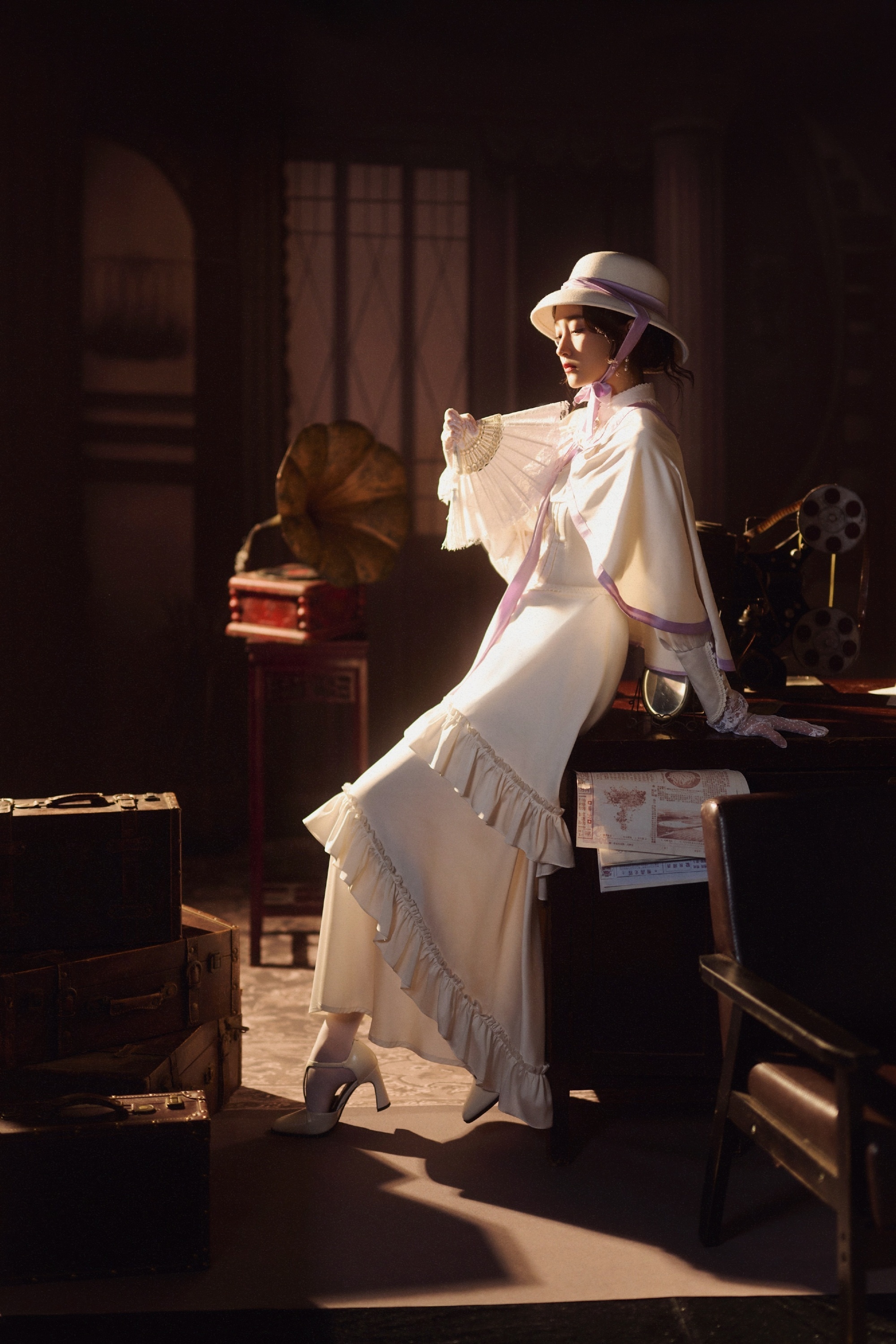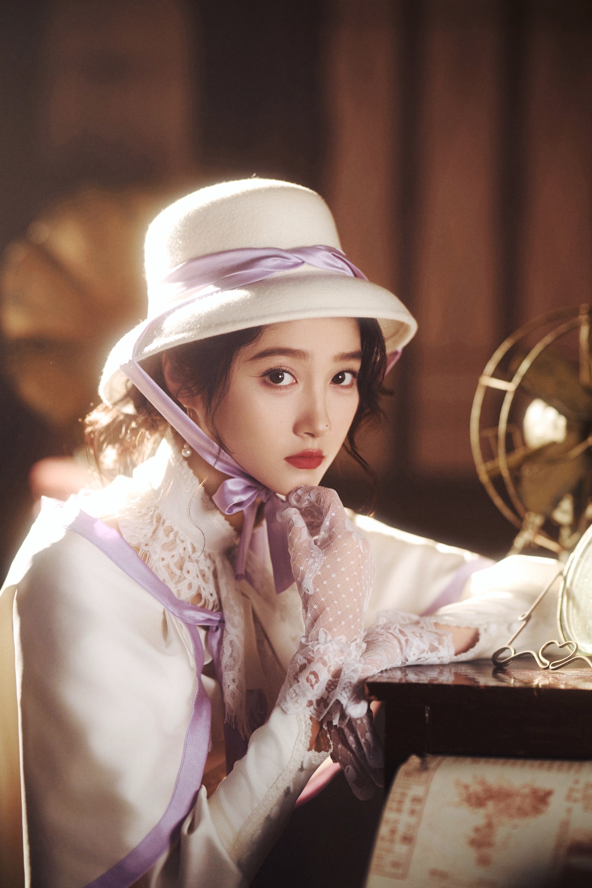 关晓彤,一身白色千金洋装,朦胧优雅的穿搭姿态。关晓彤