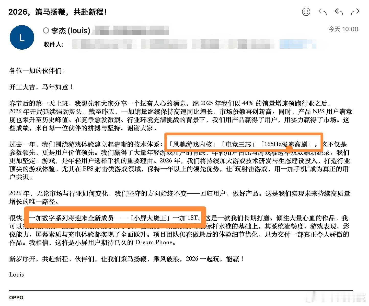 开工大吉啊,家人们!返工第一天就被一加的「马上登场」开工利是狠狠拿捏了!拆开发现利是封里的黑色底卡尺寸超有玄机,这熟悉的尺寸,我直接猜测这就是即将亮相的一加15T尺寸嘛!作为一加马年首款新机,Louis在内部开工信里直接剧透,一加15T作为全新「小屏大魔王」,整机实力直接拉满!系统流畅度、游戏表现、影像、屏幕素质、充电体验全维度跨越式跃升,简直就是咱们小屏党的梦中情机。这次「小屏大魔王」重磅回归,直接把期待值拉满!小屏党们可以安心蹲住,三月就发布,坐等新机登场!