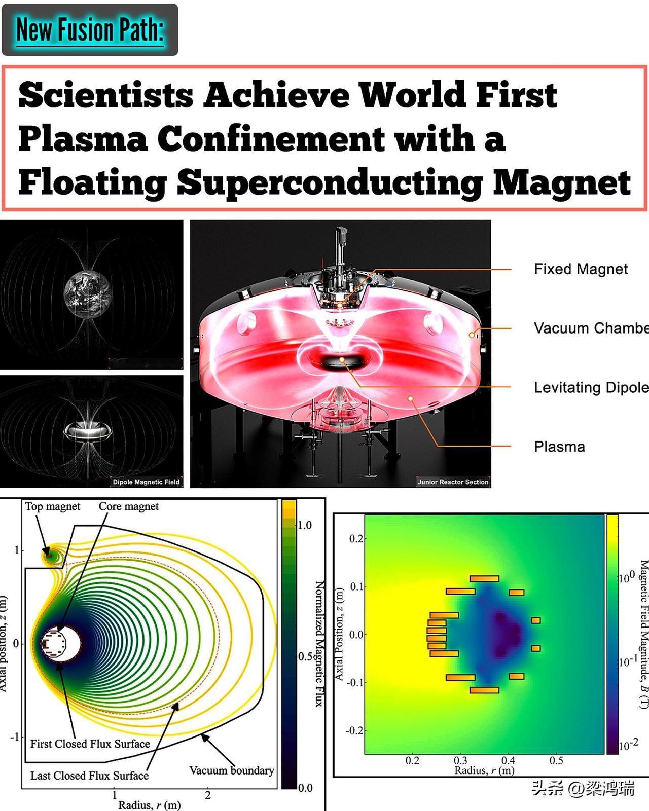 新西兰的科学家们建造了一个名为“Junior”悬浮偶极子实验的聚变实验装置,其中强大的超导环形磁铁实际上悬浮在真空室内的半空中。该装置由新西兰坎特伯雷大学(University of Canterbury)和 OpenStar Technologies 公司共同开发的。 该磁铁强度极高(约 5.6 特斯拉),采用名为 REBCO 的先进高温超导体,因此能够高效地产生巨大的磁场,而不会过热或像一月份的健身新手一样中途退出。 他们用微波(约 50 千瓦)加热气体,直到气体在数十万度的温度下变成等离子体,并于 2024 年成功制造出了他们的第一个等离子体。 由于磁铁处于悬浮状态且没有任何东西接触它,因此磁场保持非常稳定,有助于更有效地捕获等离子体,类似于地球磁场将带电粒子束缚在太空中的方式。 如果这种方法能够扩大规模,就有可能制造出更简单、更稳定的聚变反应堆,从而产生像太阳能一样的清洁能源。