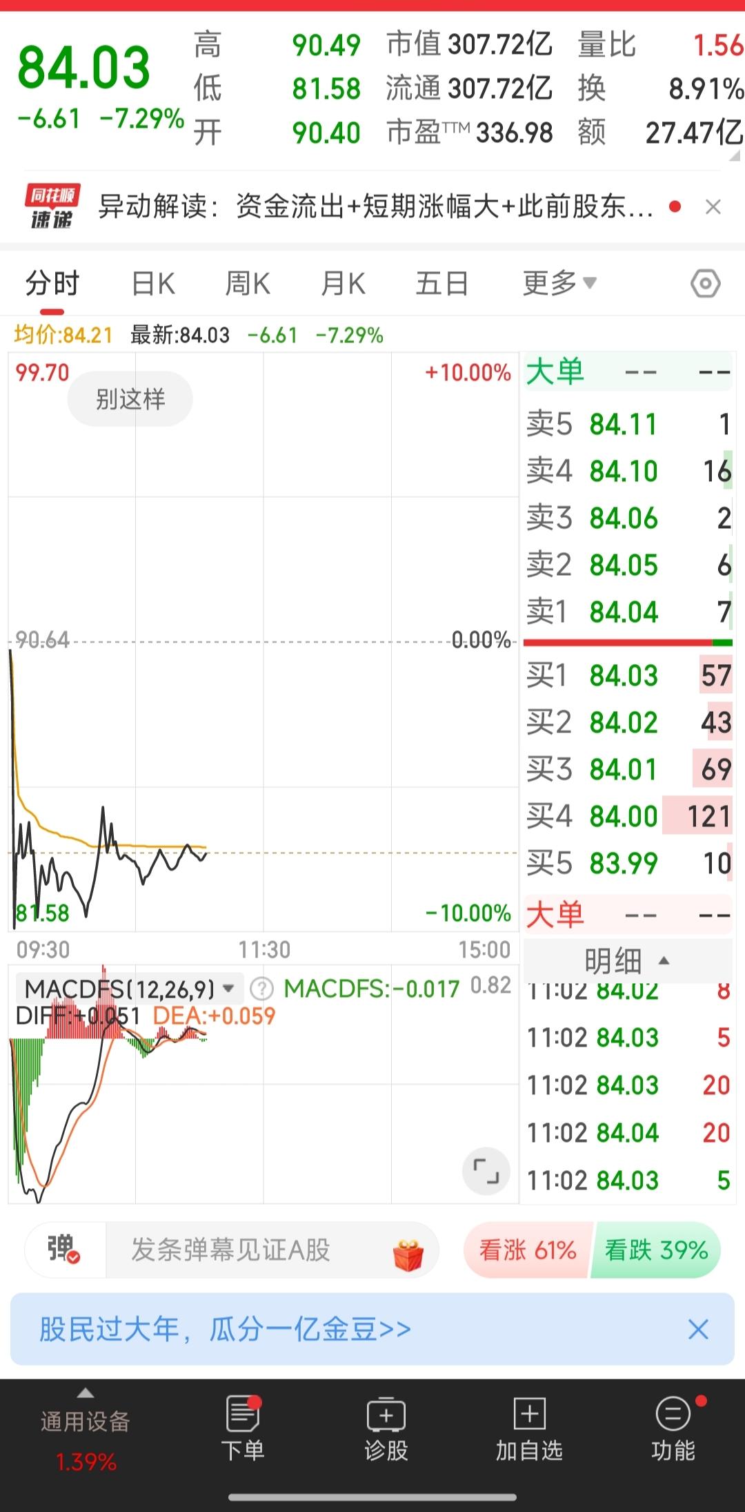 利好兑现就是利空,可以说今天在这个股票上体现的淋漓尽致!春晚的人形机器人表演非常扎眼,不但能够腾空翻还能打醉拳,正当大家满怀期待新年开盘第1天能大赚特赚的时候,他却给你浇了一盆冷冰冰的冷水下来。今天大盘应该说比较强的,至今为止涨了一个多点,可即使这样也扶不起这个阿斗!即使你是人形机器人龙头股票也不行,因为我们的大A从来都是炒预期,而不是去炒这个公司的长期赚钱效应,这也就是我们的大A指数几十年来一直在三四千点徘徊主要原因。看到春晚上机器人的精彩表演,当时很多专家就在推波助澜,我想当时买到这票的人心里是乐开了花的,可现实是年前有多欢喜今天就有多落寞,我想这些人应该会从幻想中冷静下来,这就是资本市场的无情冷酷,当然对于炒股人来说这也是一次成长,只有摔倒碰壁才会记住曾经的痛,你们说是不是?