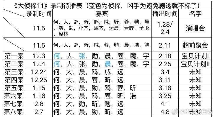 《大侦探》最新录制待播表