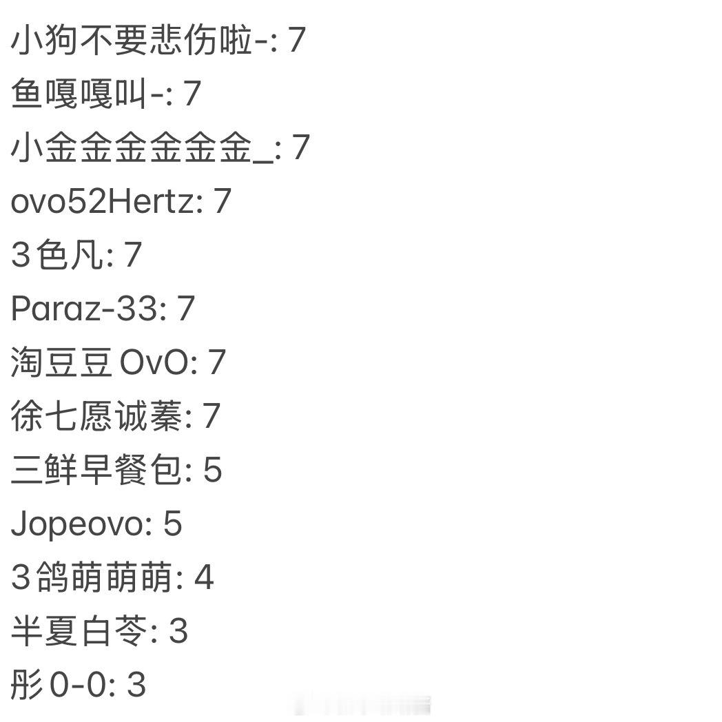 七天的打卡活动顺利结束啦!谢谢大家的参与恭喜以下宝宝获得了我们精心准备的小礼物~大家记得私信路路酱喔