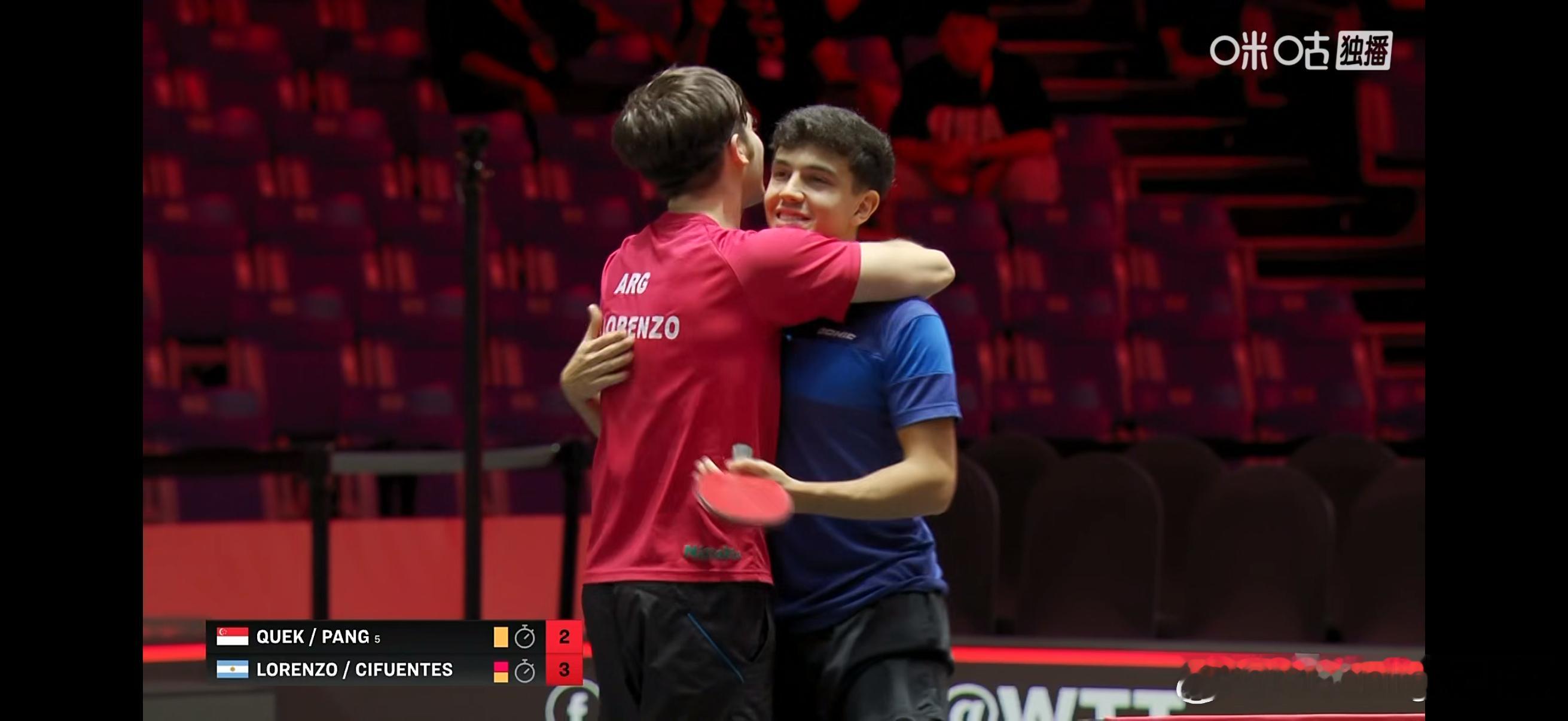 🇦🇷西福恩特斯/洛伦佐3比2郭勇/冯耀恩🇸🇬(11-13,12-10,7-11,11-7,11-9)