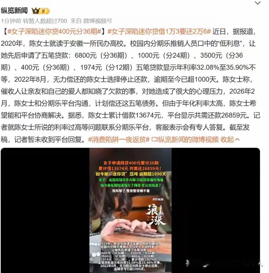 这样的"迷你贷",简直要掏空年轻人的所有。 安徽的陈女士,在上大学的时候,因为