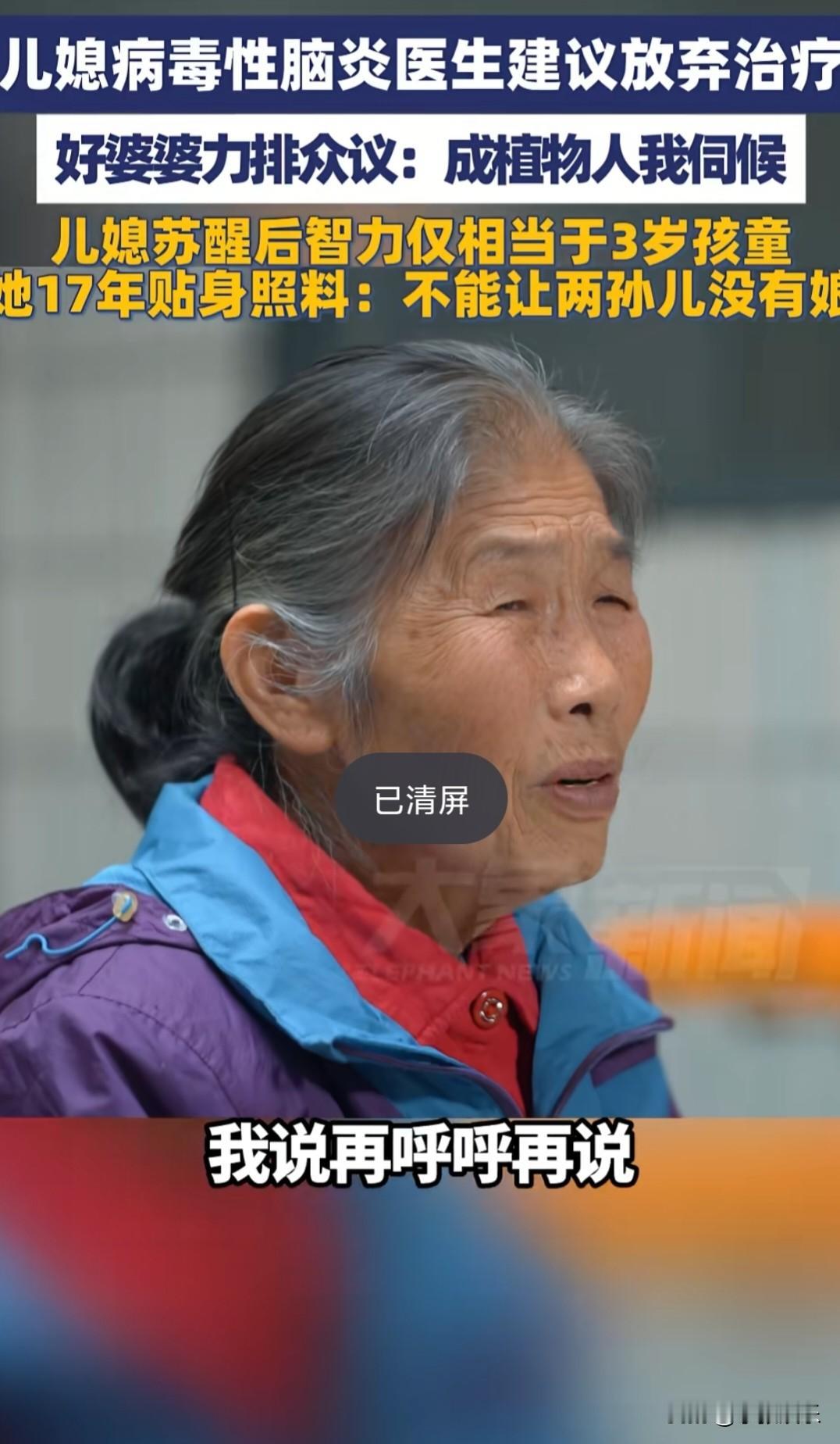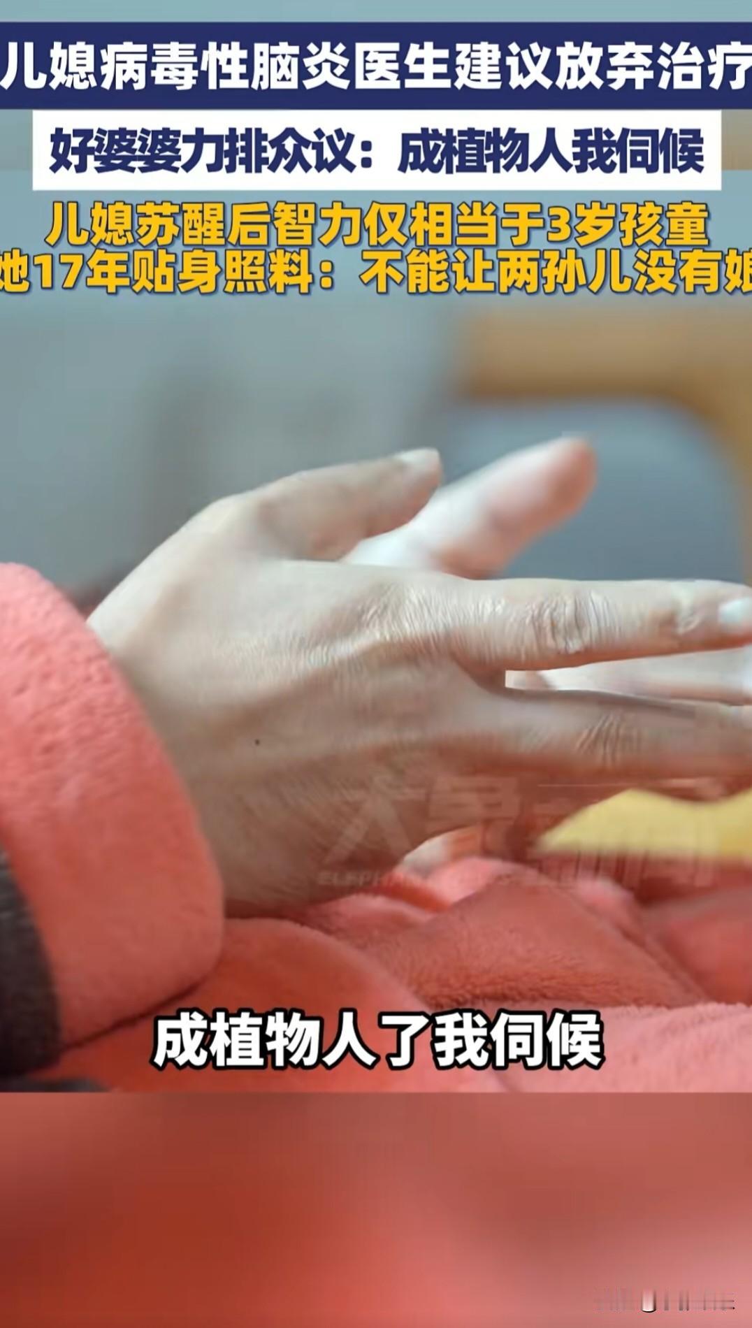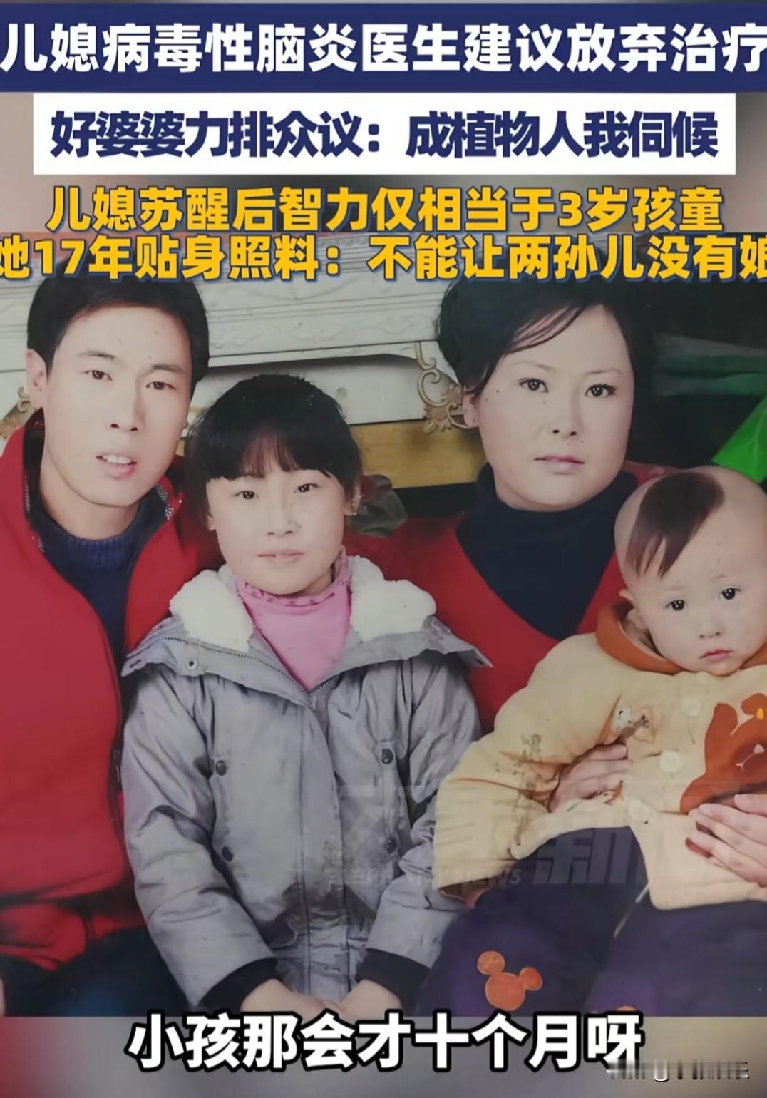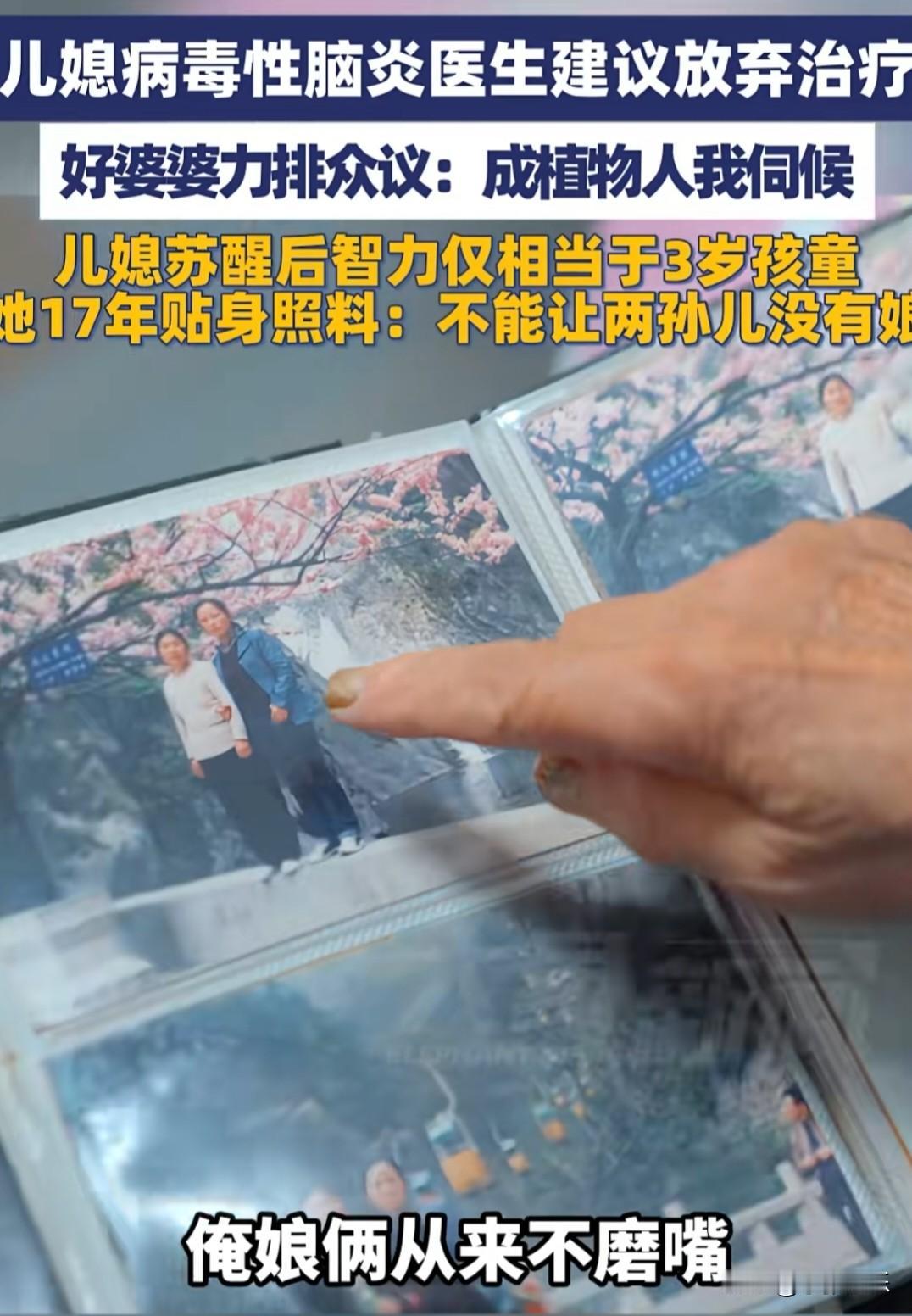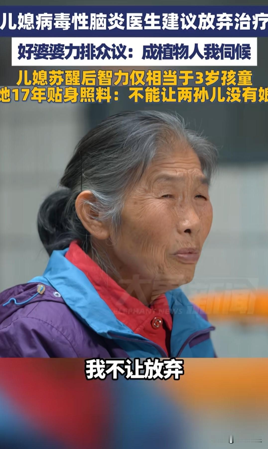 17年前儿媳瘫痪,她做了一个决定,如今全村人都看哭了 在河南的一个小村庄,有位老人叫刘桂芳。 17年前,她做了一件让所有人都不理解的事:儿媳突发脑溢血瘫痪在床,儿子常年在外打工,村里人都劝她:“送养老院吧,你年纪也大了,别把自己拖垮。” 可刘桂芳摇摇头,只说了一句话:“她是我儿媳妇,我得管。”这一管,就是17年。6200多个日夜,她把儿媳重新“养大”。 17年前的那个秋天,儿媳小荣突然倒地,送到医院时已经昏迷。手术后,人虽然救回来了,却再也站不起来,连话都说不清。那年,小荣才32岁,孙子刚上小学。 刘桂芳守在病床边,一遍遍喊儿媳的名字。医生说,可能永远醒不过来。可她不信。 每天擦身、翻身、喂饭、端屎端尿,半夜还要起来好几次。最难的,是儿媳大小便失禁,有时刚换好床单又脏了。刘桂芳从不嫌烦,总是说:“谁还没个难处?她是我闺女啊。” 为了给儿媳补充营养,刘桂芳养了几只鸡,鸡蛋都留给小荣 冬天冷,她就把热水袋裹在毛巾里,塞进儿媳被窝,再攥着儿媳的手睡。有人问她累不累,她说:“累啥?她手指头能动了,我高兴得哭了好几回。” 17年过去,小荣从完全瘫痪到能坐轮椅,从不会说话到能含糊地喊“妈”,从眼神呆滞到看见婆婆就笑。这背后,是刘桂芳一头白发,是压弯的腰,是粗糙得像树皮的手。 有人问刘桂芳图啥?她说:“一家人,不就是你拉着我,我拽着你,走完这一辈子吗?” 这世上,有一种爱叫“儿媳妇也是闺女”,有一种坚持叫“只要我活着,就照顾你”。刘桂芳用17年告诉我们:真正的亲情,不是锦上添花,而是雪中送炭;不是一时兴起,而是一生守护。 这样的老人,平凡得像田里的庄稼,却活成了全村人心里的光。愿好人一生平安,愿所有深情都不被辜负。