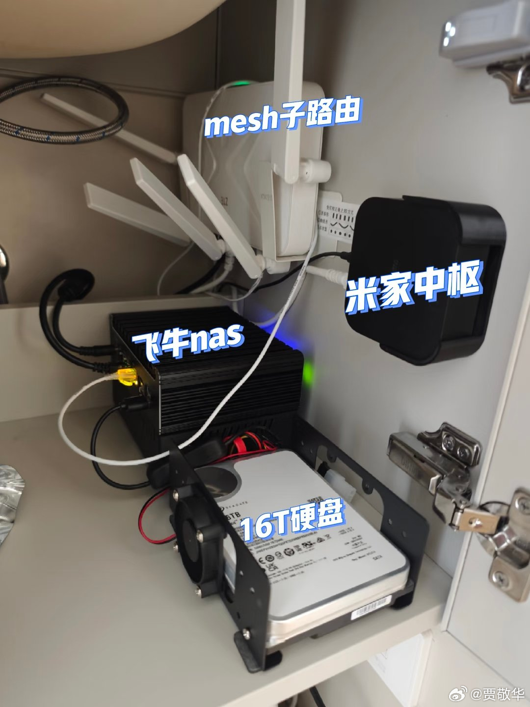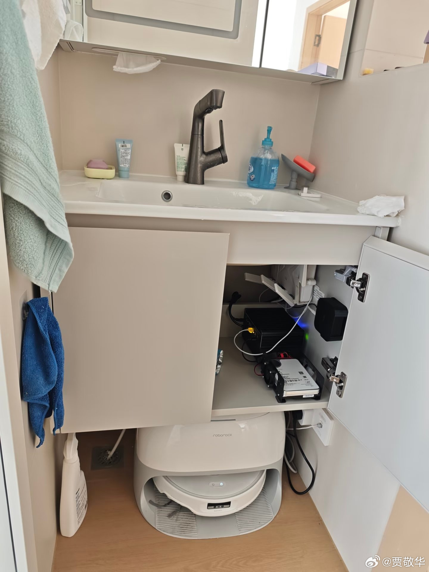 有些网友真有才啊,刚才群里朋友分享了一个家庭小机房,NAS,路由器和硬盘都放在了洗手盆下面。