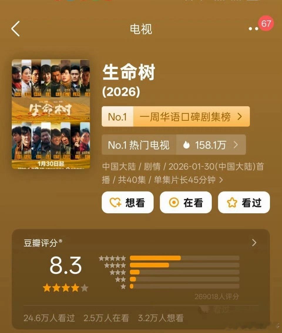 杨紫生命树开分十天,评分从8.1涨到8.3