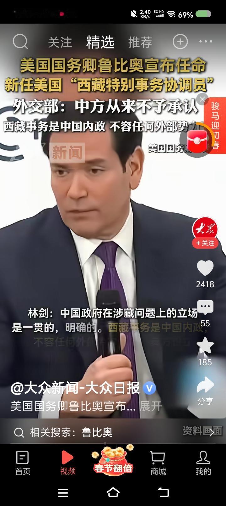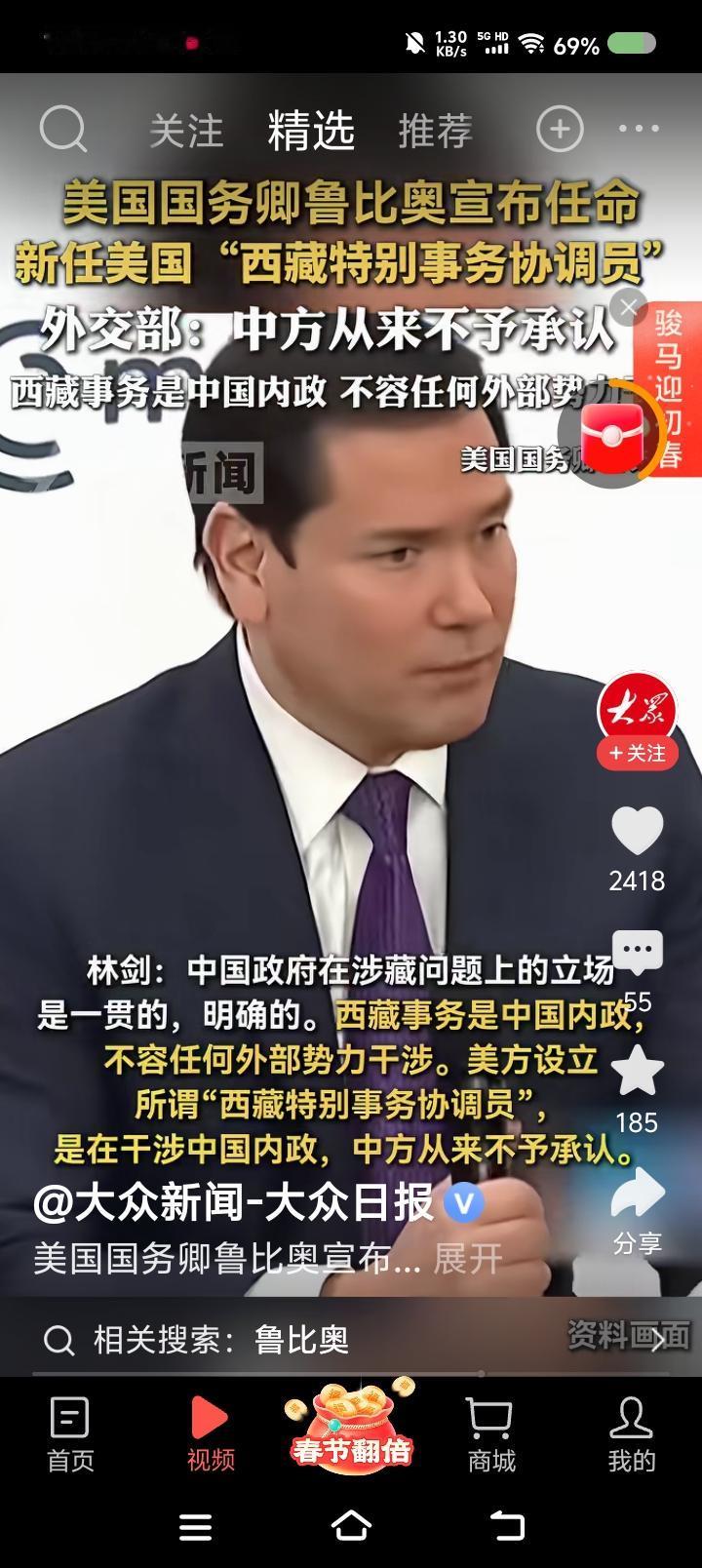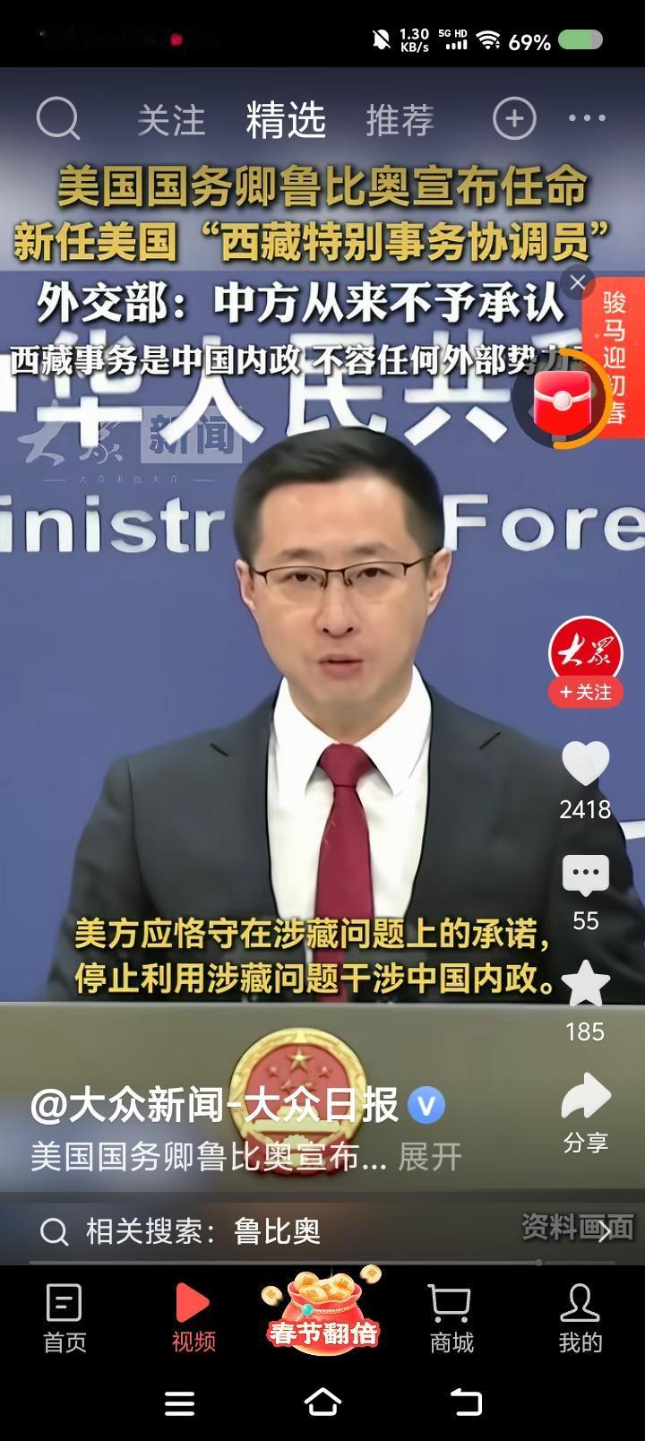 建议无限期推迟允许特朗普访华的时间—— 据报道,美国国务卿鲁比奥任命新的“西藏特别事务协调员”。我外交部声明不予承认,反对外国干涉中国内政。 点评: 特朗普,别来了吧。你到中国来干什么?中方要不要成立“美国与加州关系处理委员会”?