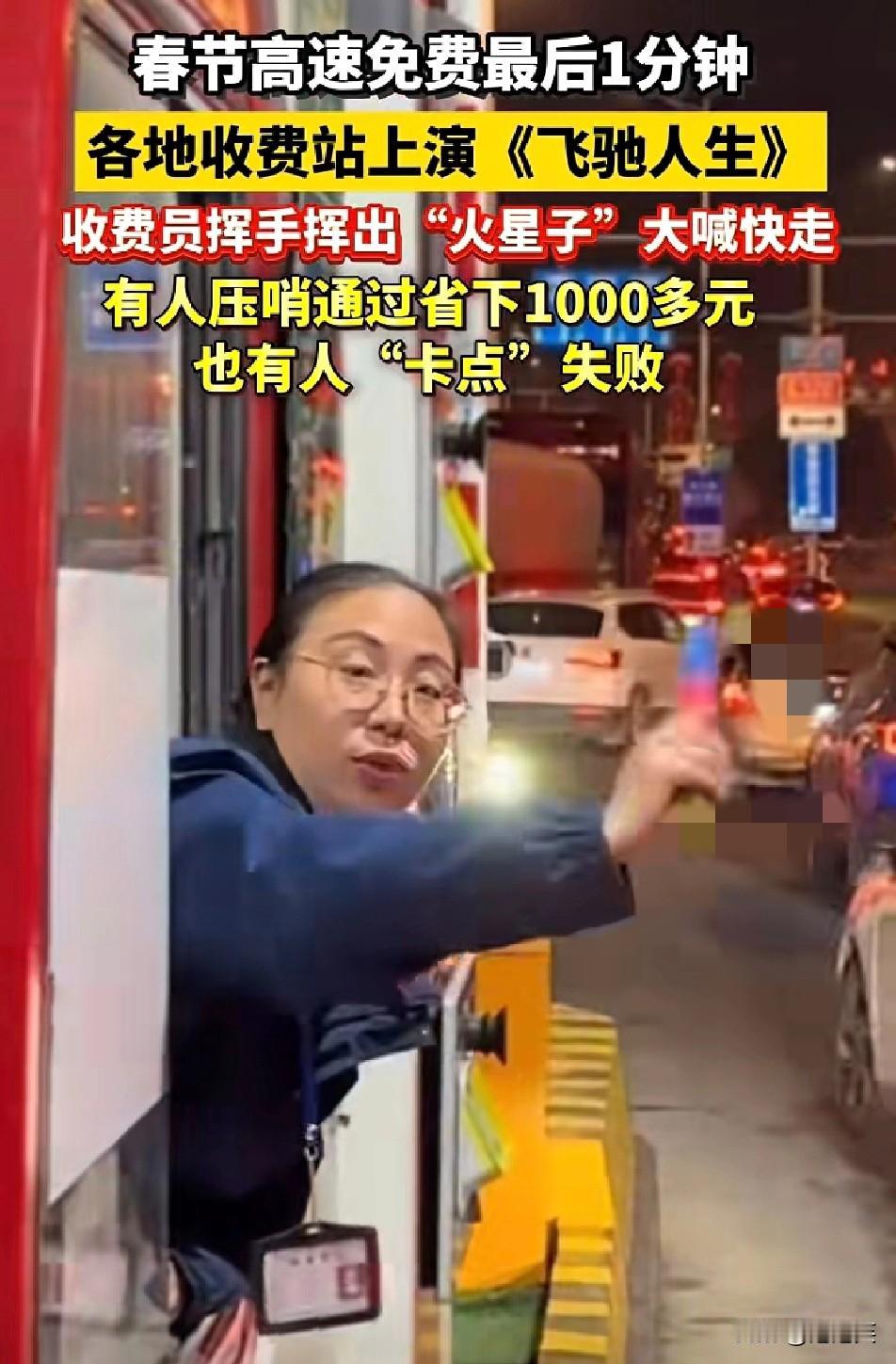 春节高速免费 最后一分钟 全国收费站直接上演《飞驰人生》! 收费员小姐姐探出身子 手都挥出残影,大喊“快走快走” 比车主还急! 有人精准卡点,最后一秒冲过 省下1000多块过路费笑得合不拢嘴 也有人差一秒没赶上,眼睁睁看着栏杆落下,白跑一趟 这哪是收费站,分明是大型“极限挑战”现场!😂 你们有没有卡点冲过高速免费的经历?
