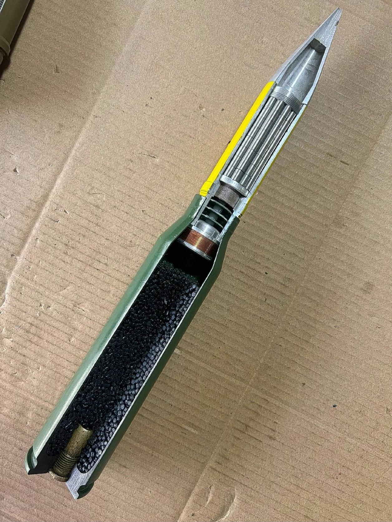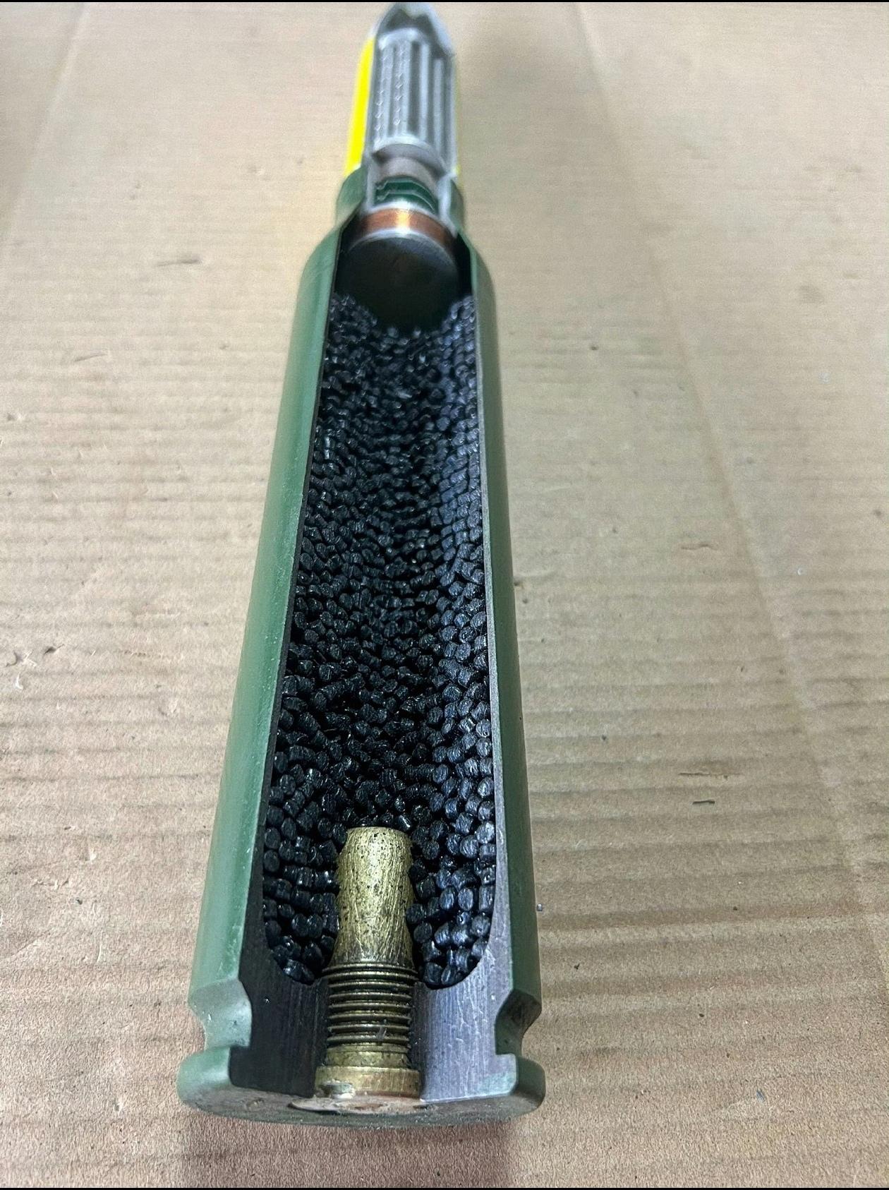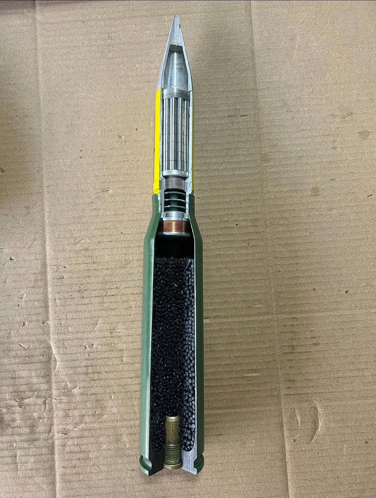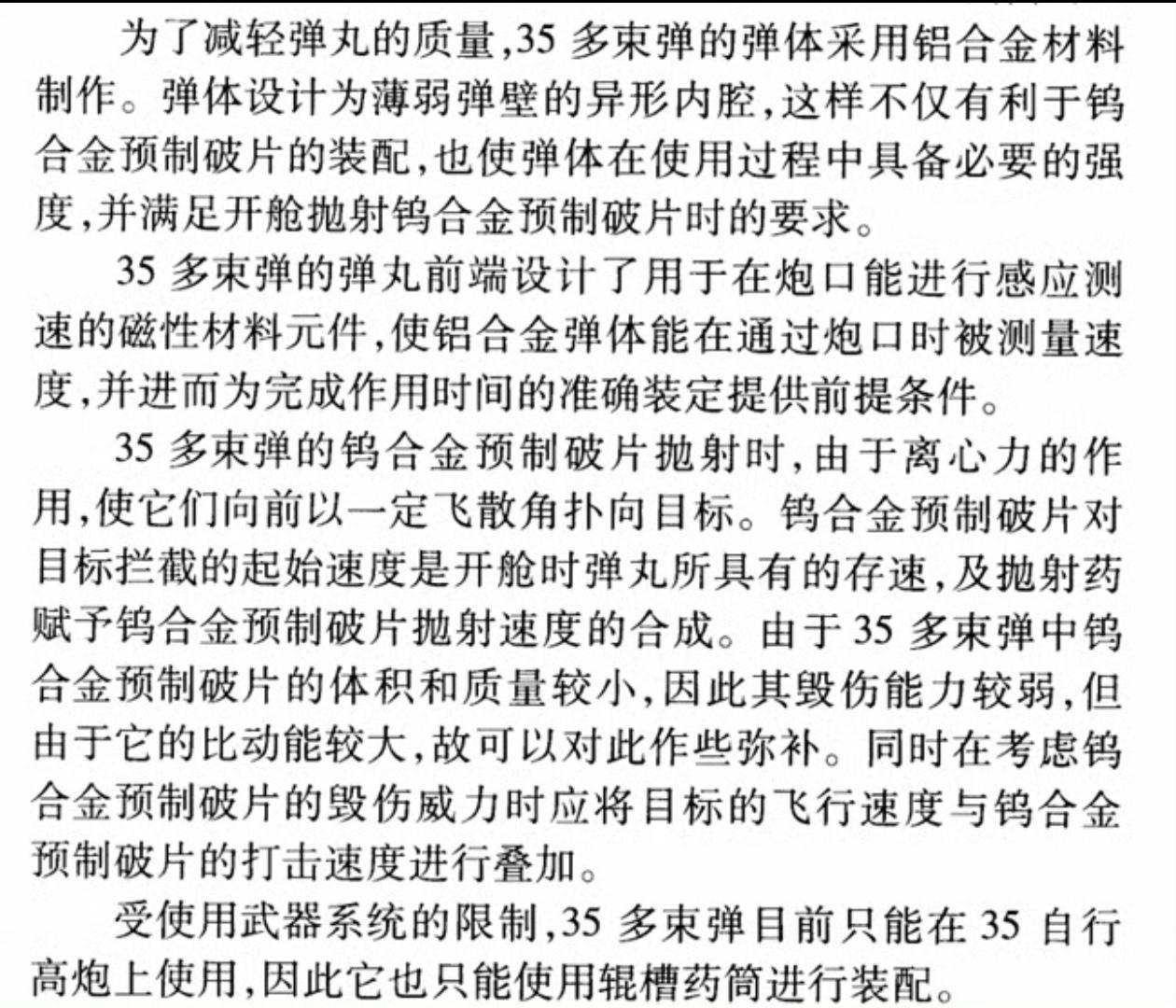 这是参考引进瑞士技术,国产双35毫米高炮的阿海德弹智能装订距离抛射弹药,国内称为多束弹,由于需要炮口编程线圈才能使用,因此牵引高炮PG99不能打,只有PGZ09自行高炮才能打。而一并舰载37炮并不能通过简单的口径匹配来使用这种弹药,也就是双重命中体制并不能使用AHEAD弹药。