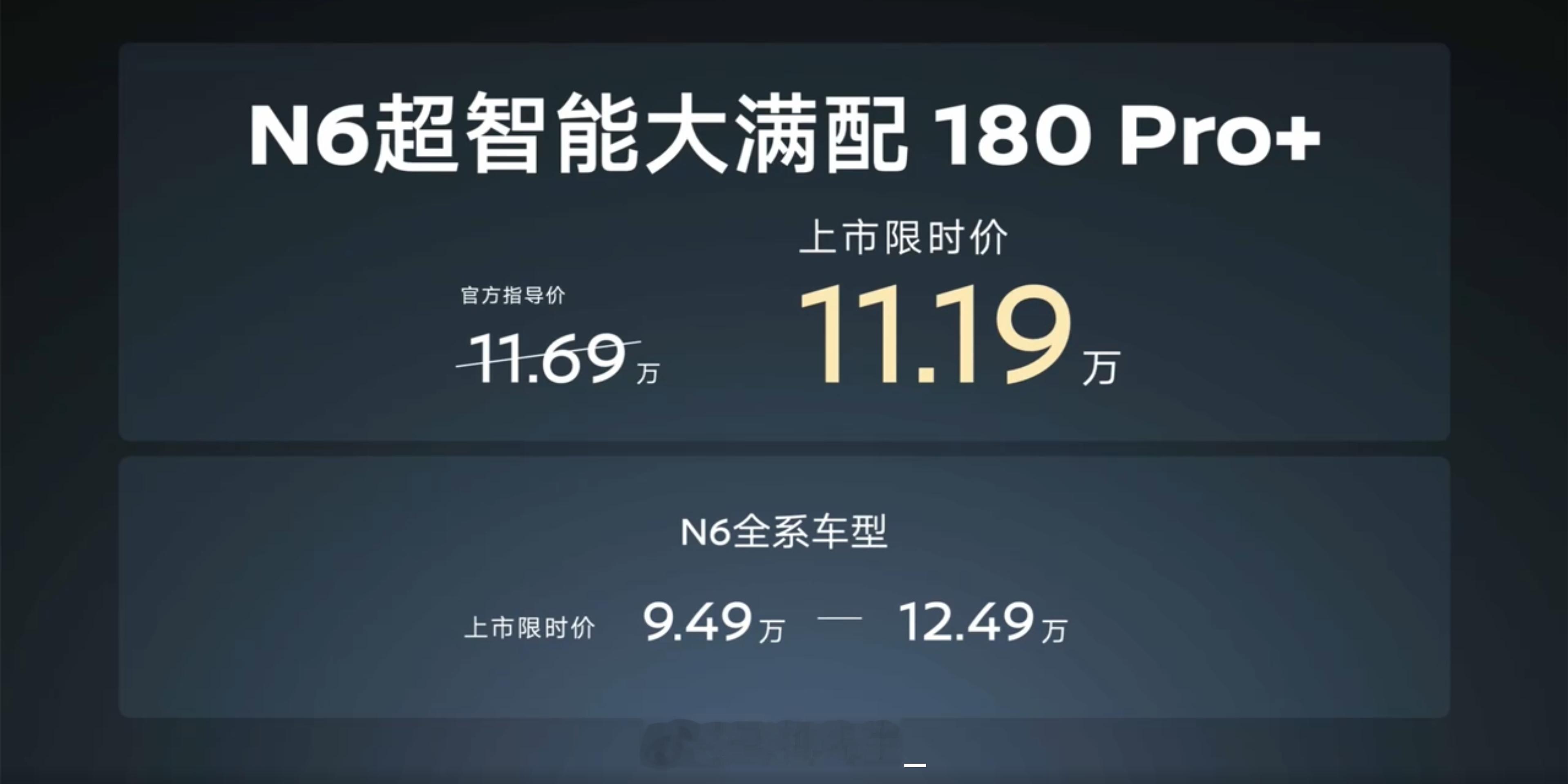 这次 N6 在这基础上新增 180 Pro+ 的版本,限时售价 11.19 万。