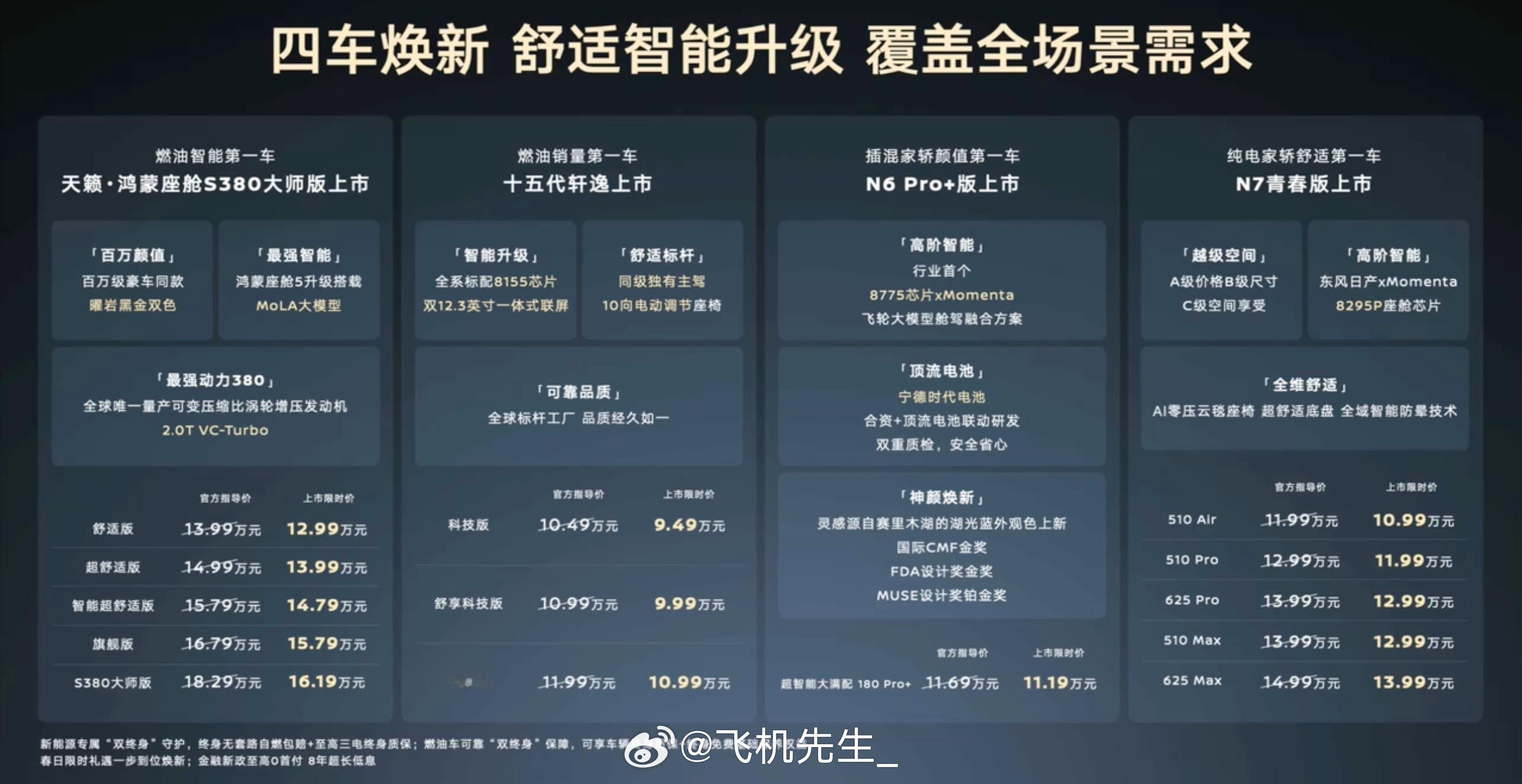 骞总公布了东风日产N7和N6的换新: