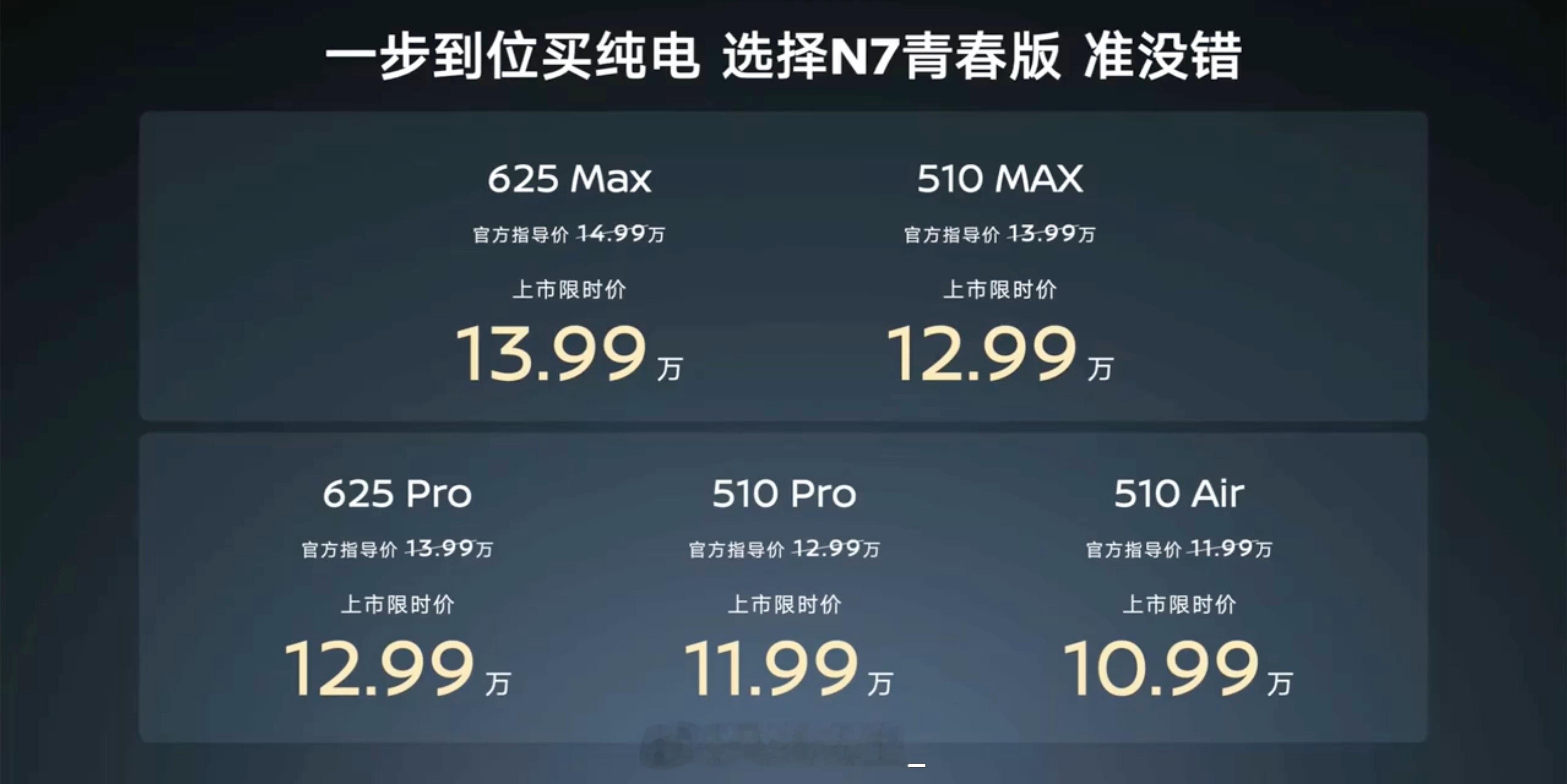 N7 全系上市限时价10.99万元—13.99万元,产品不变。
