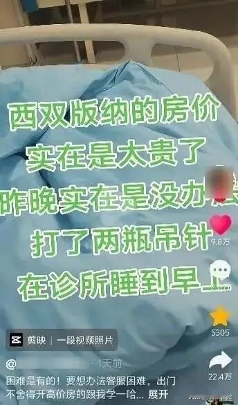 云南西双版纳,男子嫌酒店价格太贵,不舍得住,他脑瓜一转,来到一家诊所打了2个吊瓶