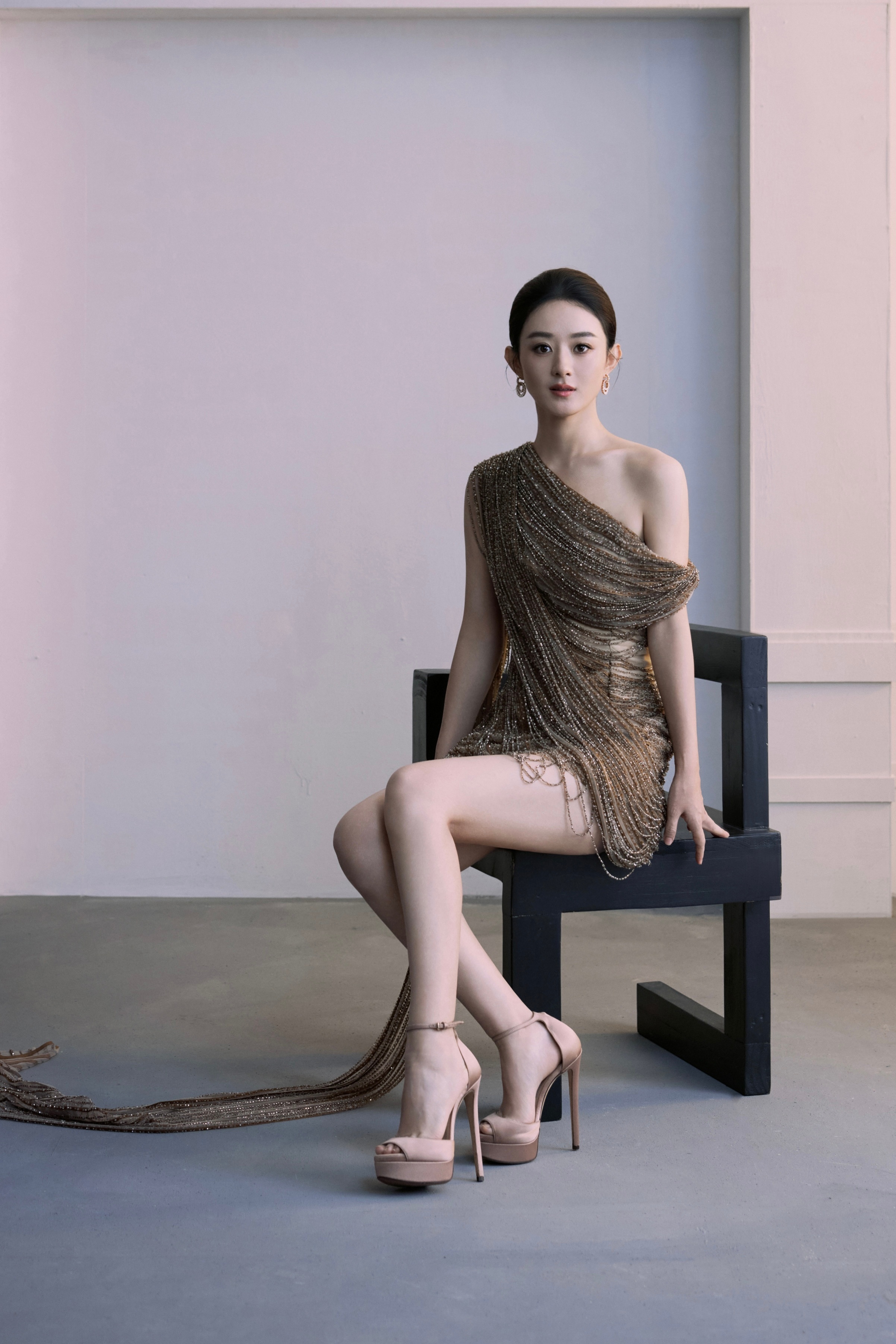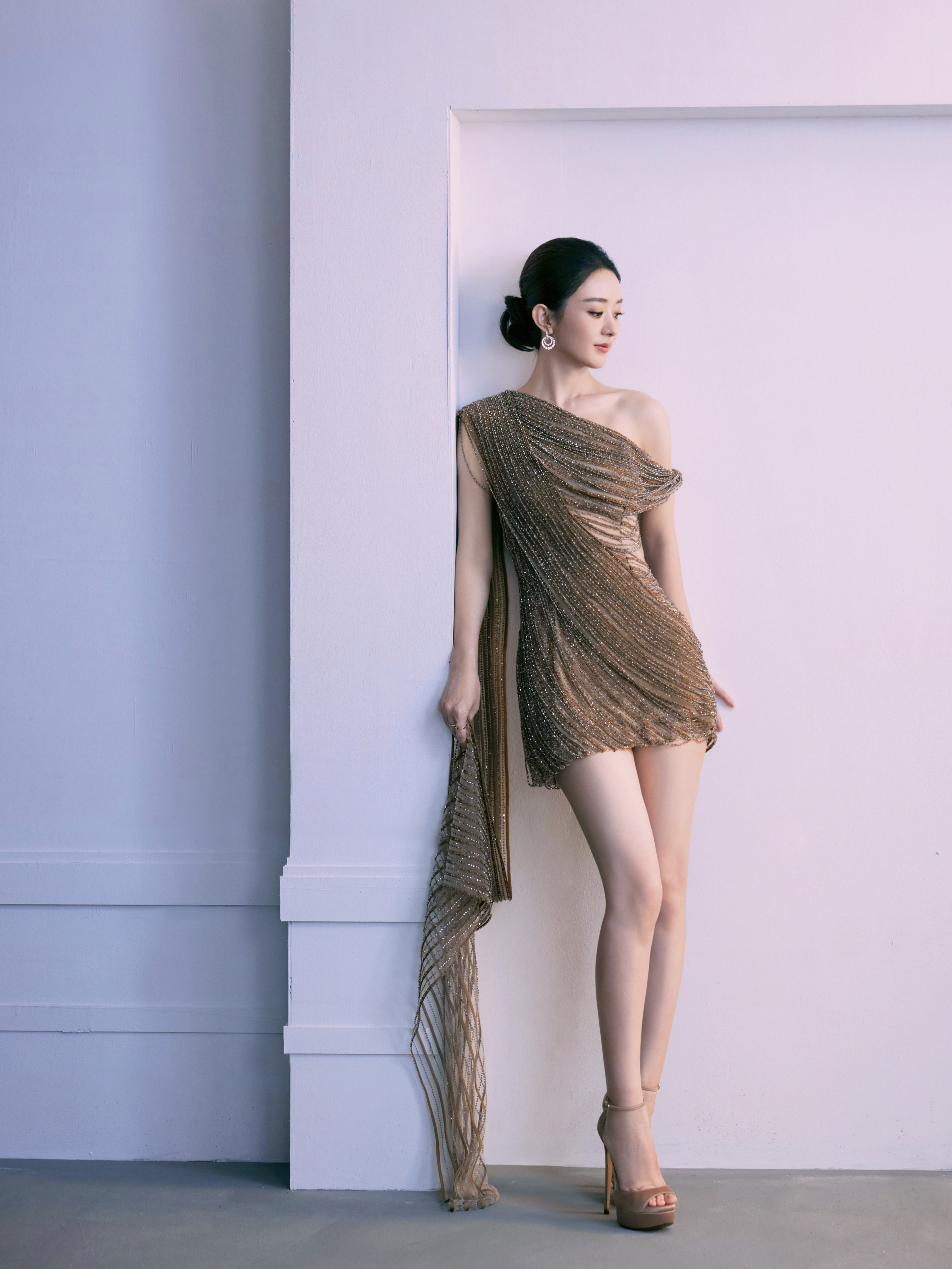 赵丽颖鎏金流苏裙杀疯了!大光明发型配斜肩礼服,贵气感溢出屏幕!