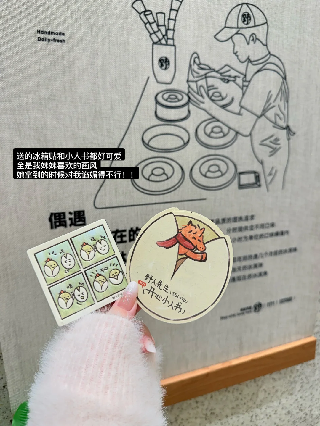 礼盒里还送了冰箱贴和开心果小人书