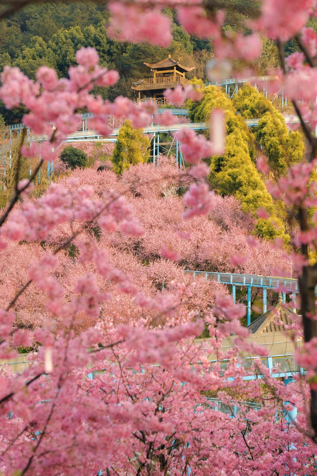 🔴樱花:直接走到樱花所在山坡顶上的平台,这一片真的很好拍!