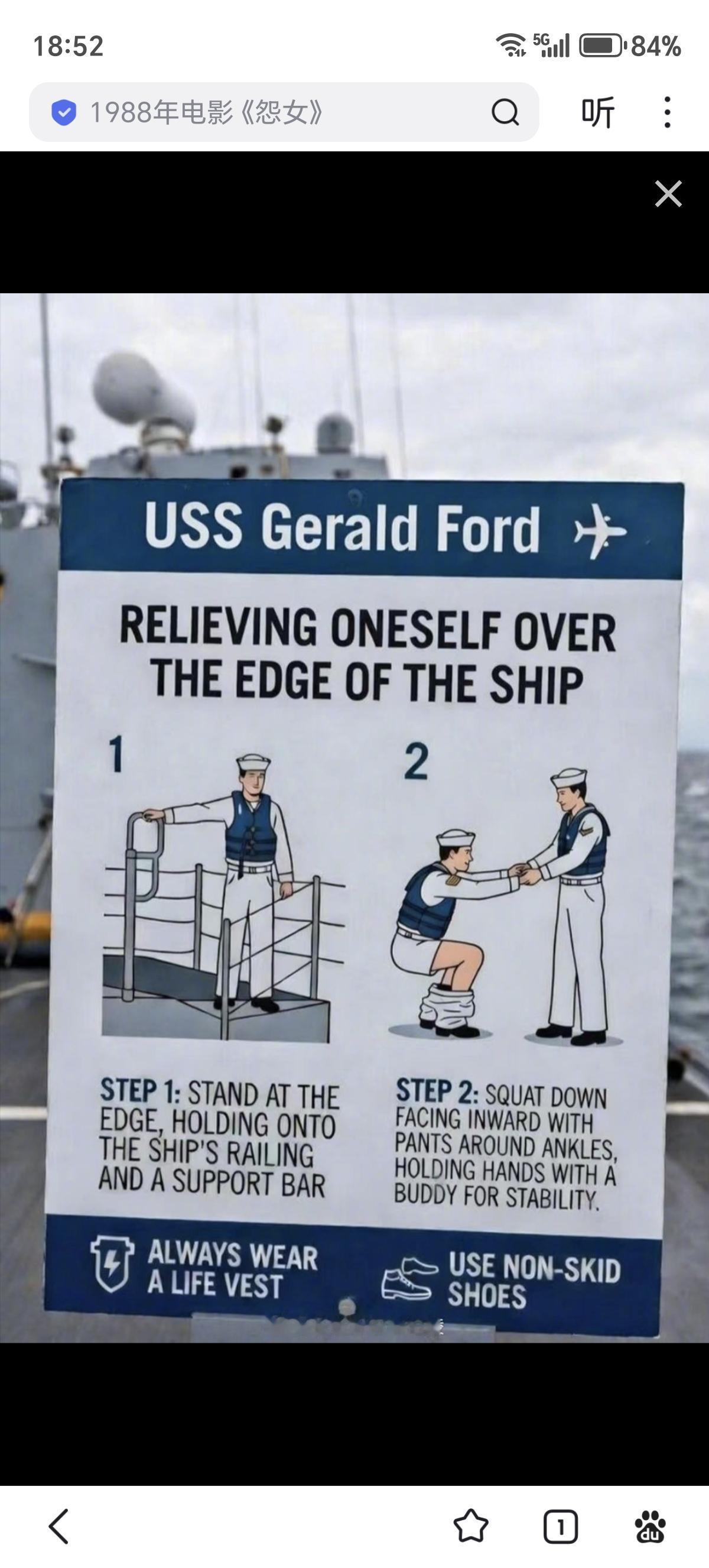 网友给厕所危机粪发图墙的美国福特号航母支了一招,舷边大小便