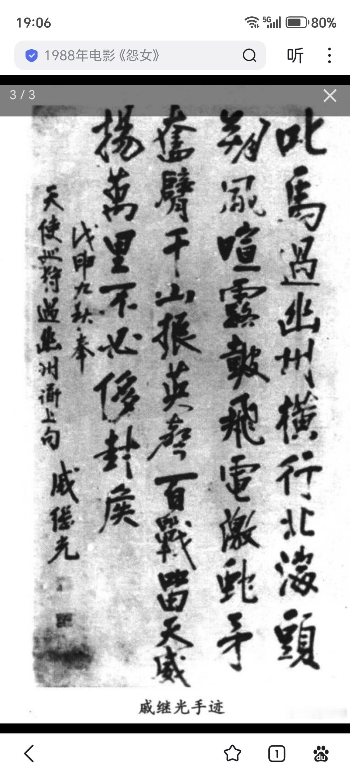 戚继光 1935年为激励抗战而作的历史人物合集里有戚继光实在太正当了。 就这阵还有人在说戚继光只是会打打海盗倭寇,调任北方戍卫之后毫无成绩,说明他不行。这完全就是胡说八道。 1935年范文澜就把戚继光在北方戍边的成绩写得非常清楚了。 叱马过幽州,横行北海头。 朔风喧露鼓,飞电激蛇矛。 奋臂千山振,英声百战留。 天威扬万里,不必侈封侯。