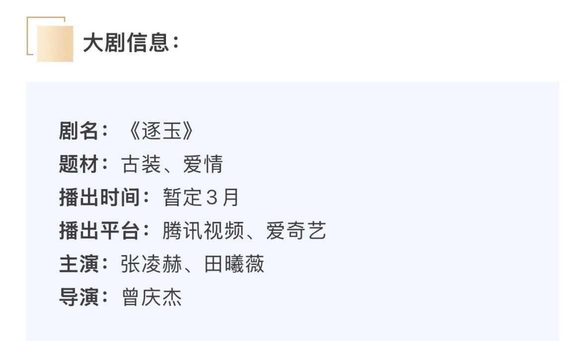 📣张凌赫田曦薇逐玉招商,预计3.6开播!