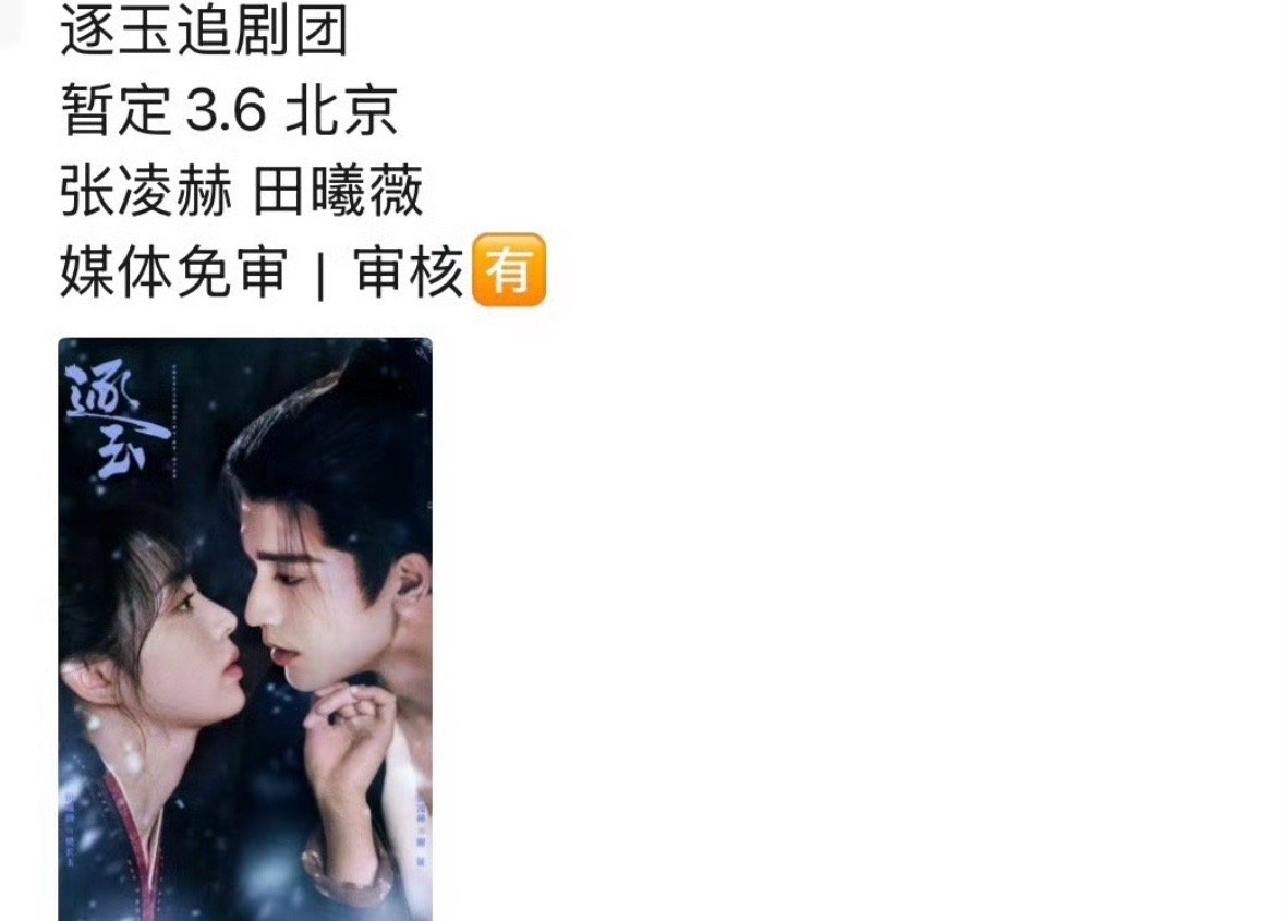 📣张凌赫 田曦薇 逐玉招商,预计3.6开播!