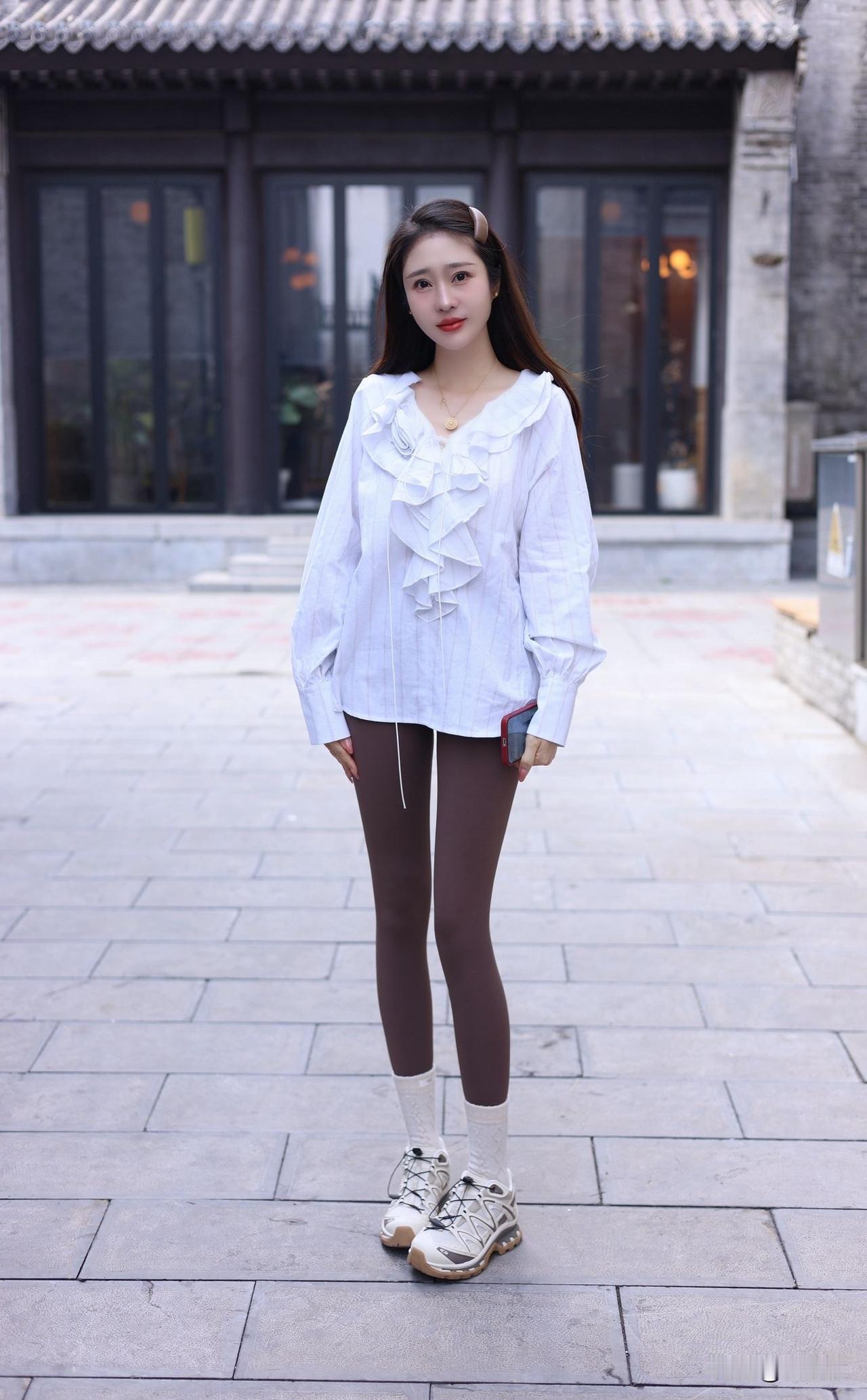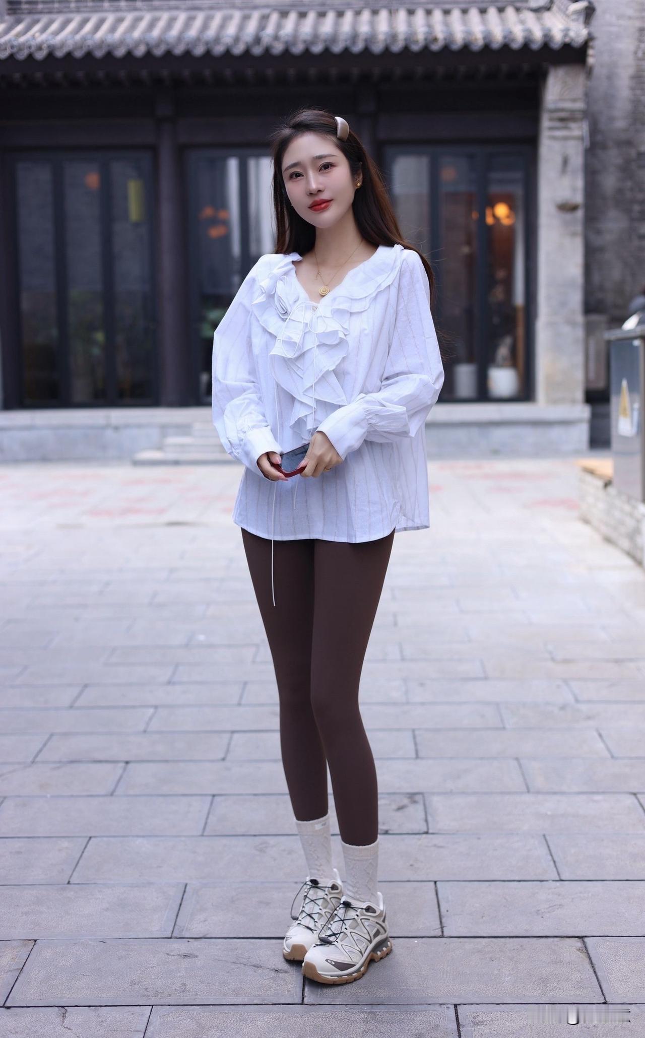 复古风穿搭指南:白衬衫+棕色紧身裤,轻松穿出时尚感!