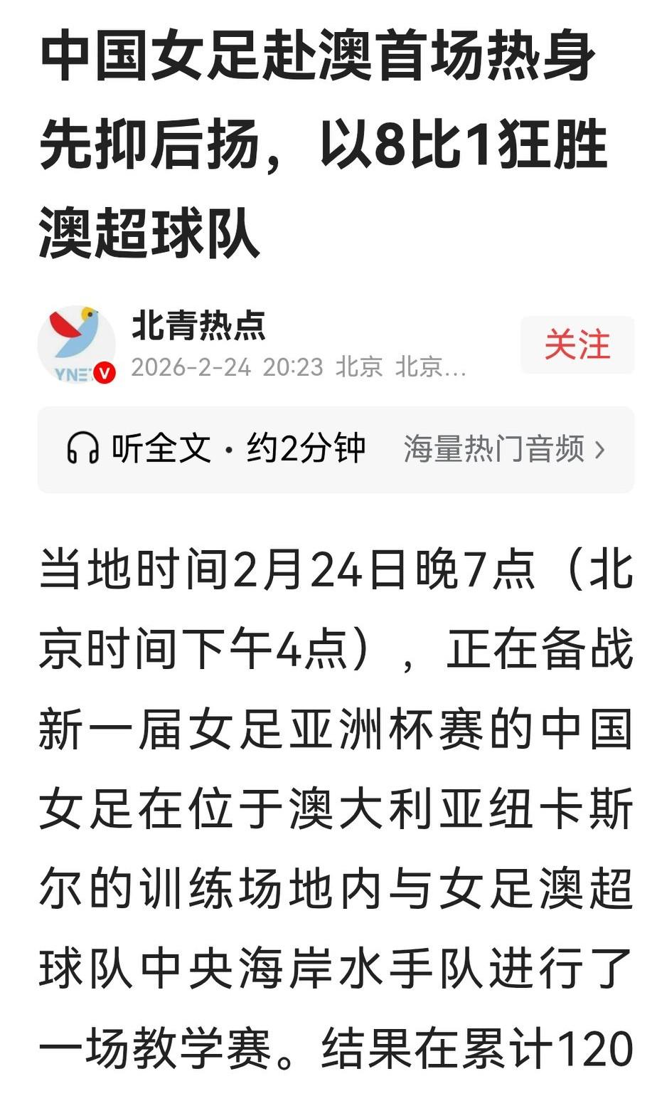 亚洲杯大战在即,中国女足赴澳首场热身赛与中央海岸水手战成8:1(常规时间3:1),让人惊喜。 赛后最得意的并非上演帽子戏法的老将唐佳丽,而是饱受争议的澳籍主帅米利西奇。他强调了训练成果,尤其是加时30分钟连进5球,展现了队伍板凳厚度和整体实力。 但要知道,卫冕冠军中国女足前一段在欧洲拉练热身輸得一败涂地,特别是0:8负于世界第五的英格兰队,球迷和媒体都把米利西哥称为“糙米”,足坛响起了老米下课的呼吁,武汉女足主帅常卫巍甚至做好了接班准备,但搞笑的是女足换帅其实是球迷之臆。 现在女足状态上佳、阵容整齐,通过热身出状态,老米真可能在亚洲杯创造卫冕奇迹。但是若在接下来的亚洲杯正式比赛中演砸了,老米在女足再也待不下去。