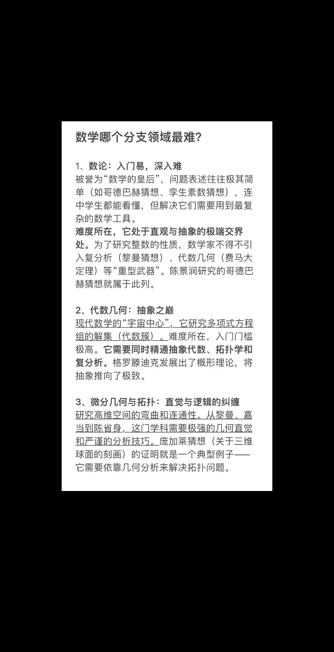 数学哪个分支领域最难?
