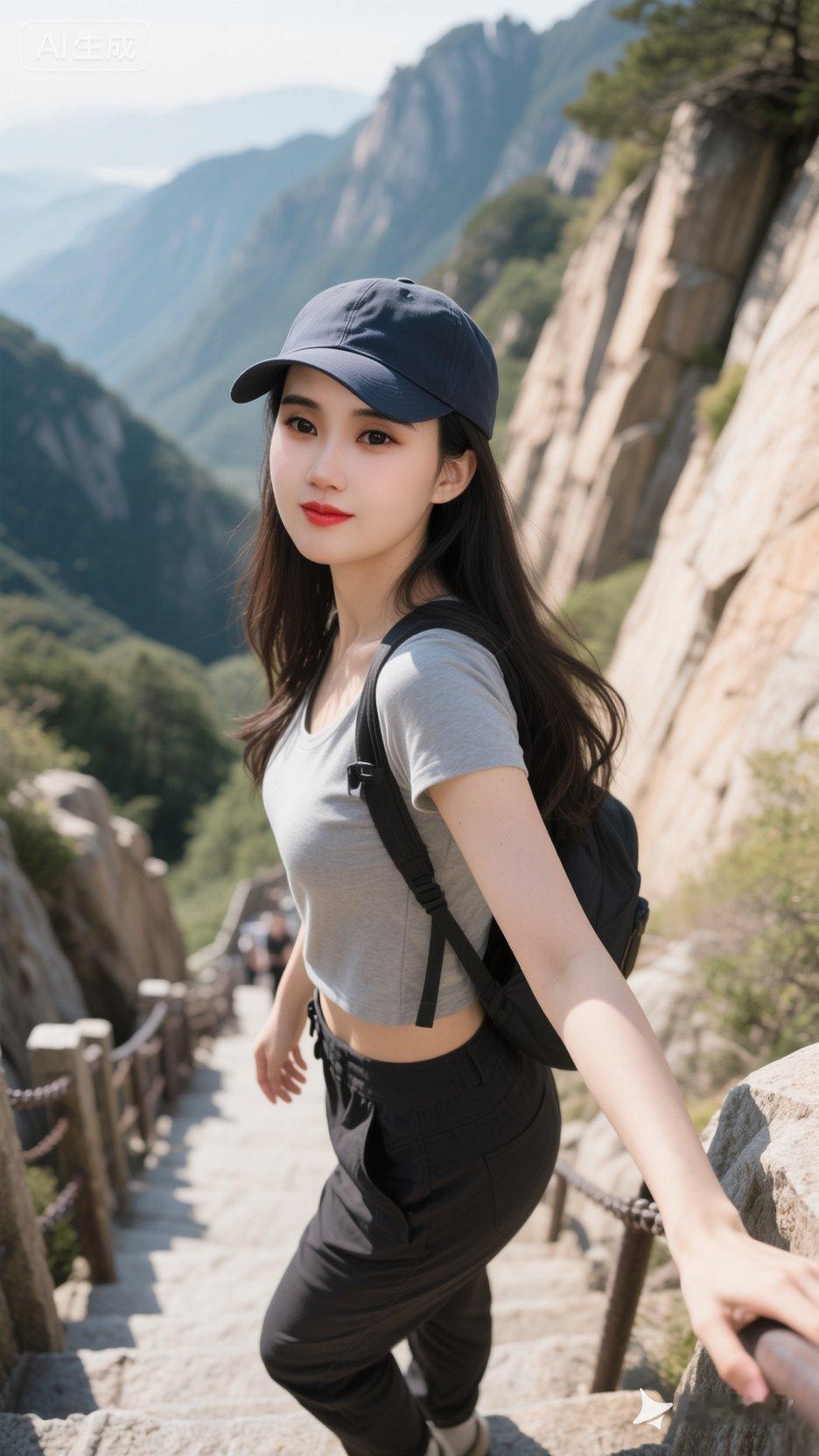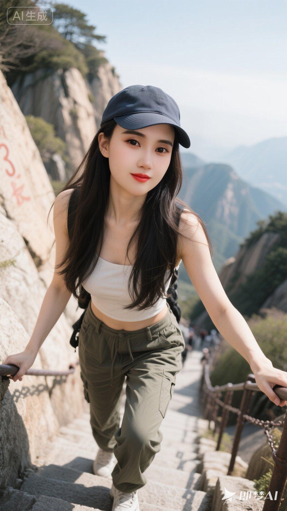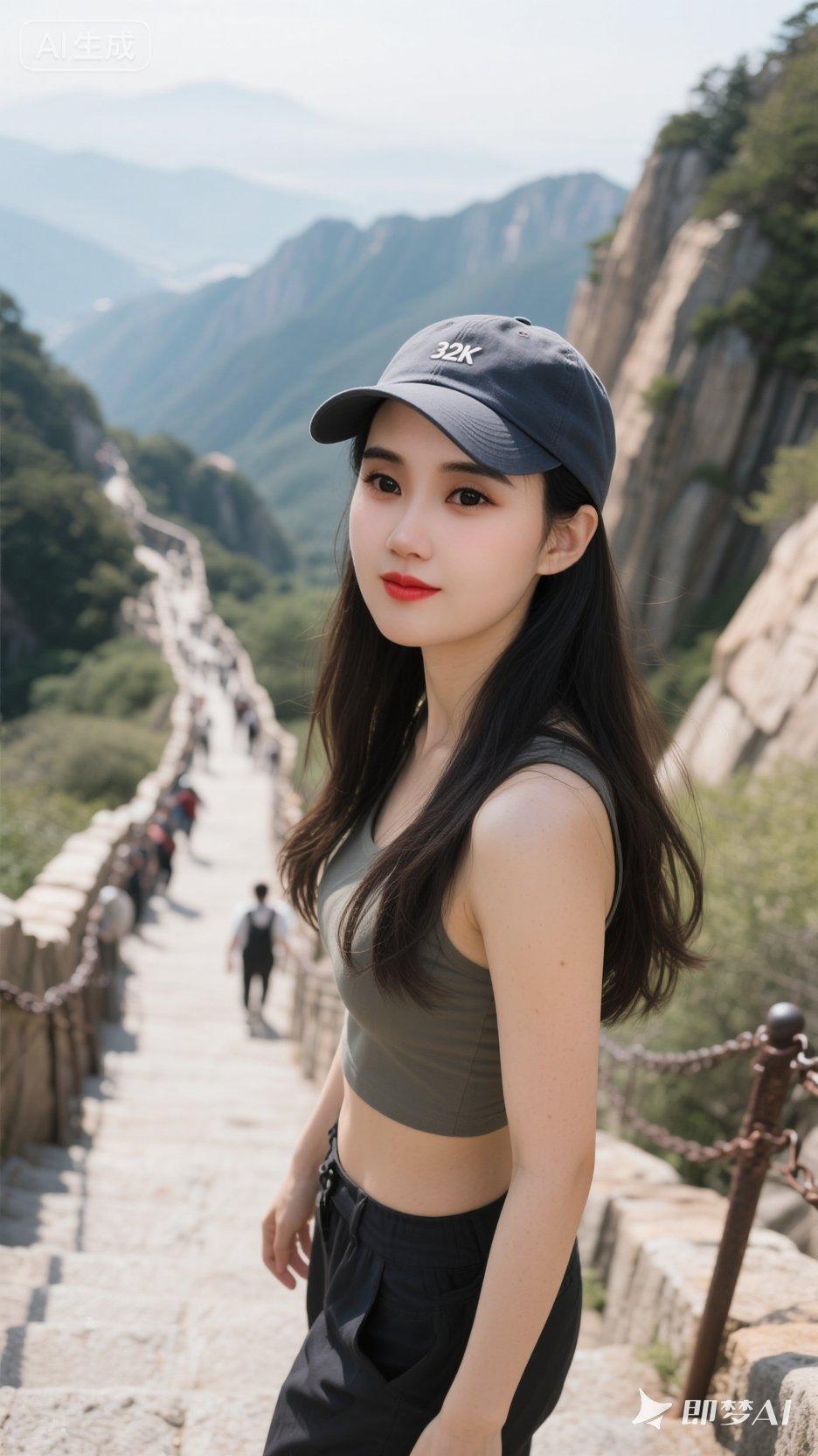 自然长发,鸭舌帽,身材优美,休闲装,全身照,高清,真实,自然