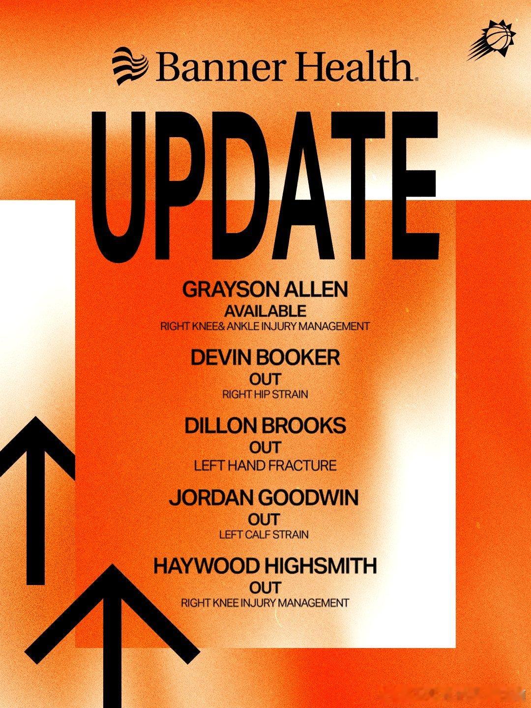 布克、狄龙、古德温、海史密斯缺阵