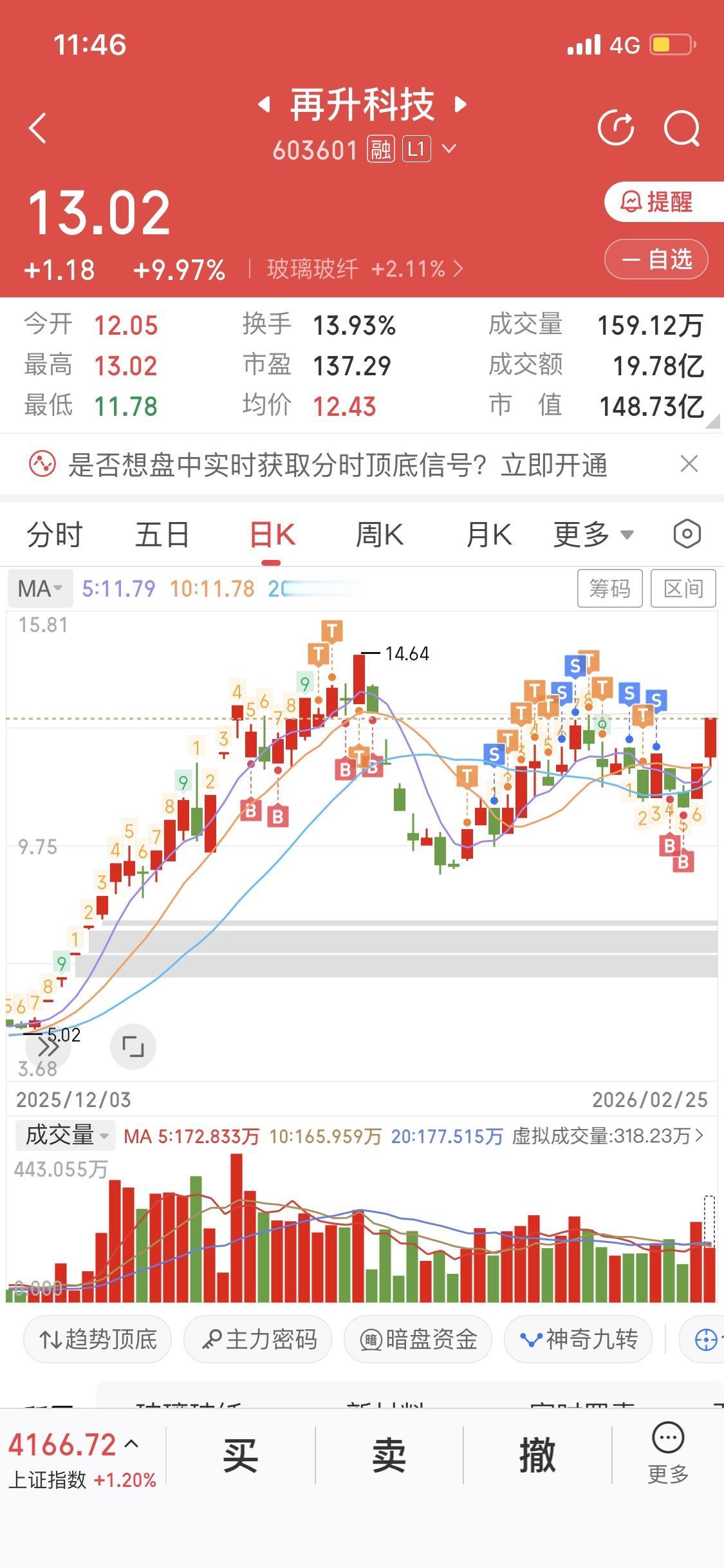 2月25日再升科技这走势太猛了,简直成龙上天拦不住!它已经突破箱体上沿,还是放量突破。从封成比50%来看,感觉要走连板行情。我就买了1000股,昨天它反复炸板我也没走。那炸板情况很特别,卖一最高点几万手卖,不像是散户干的,更像是换庄。 早盘商业航天概念异动拉升,再升科技5天3板,好多股跟着涨。截至10点,它成交额19.20亿,创2020年3月13日以来新高,股价涨9.96%,换手率20.86%。这走势太让人期待后续表现了。