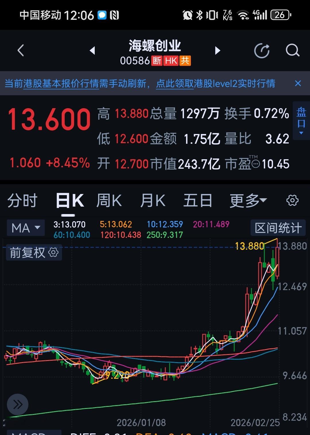 朋友去年买的一只票,10块进场,把10万本金全部都押了上去。拿了一年,中间起起伏