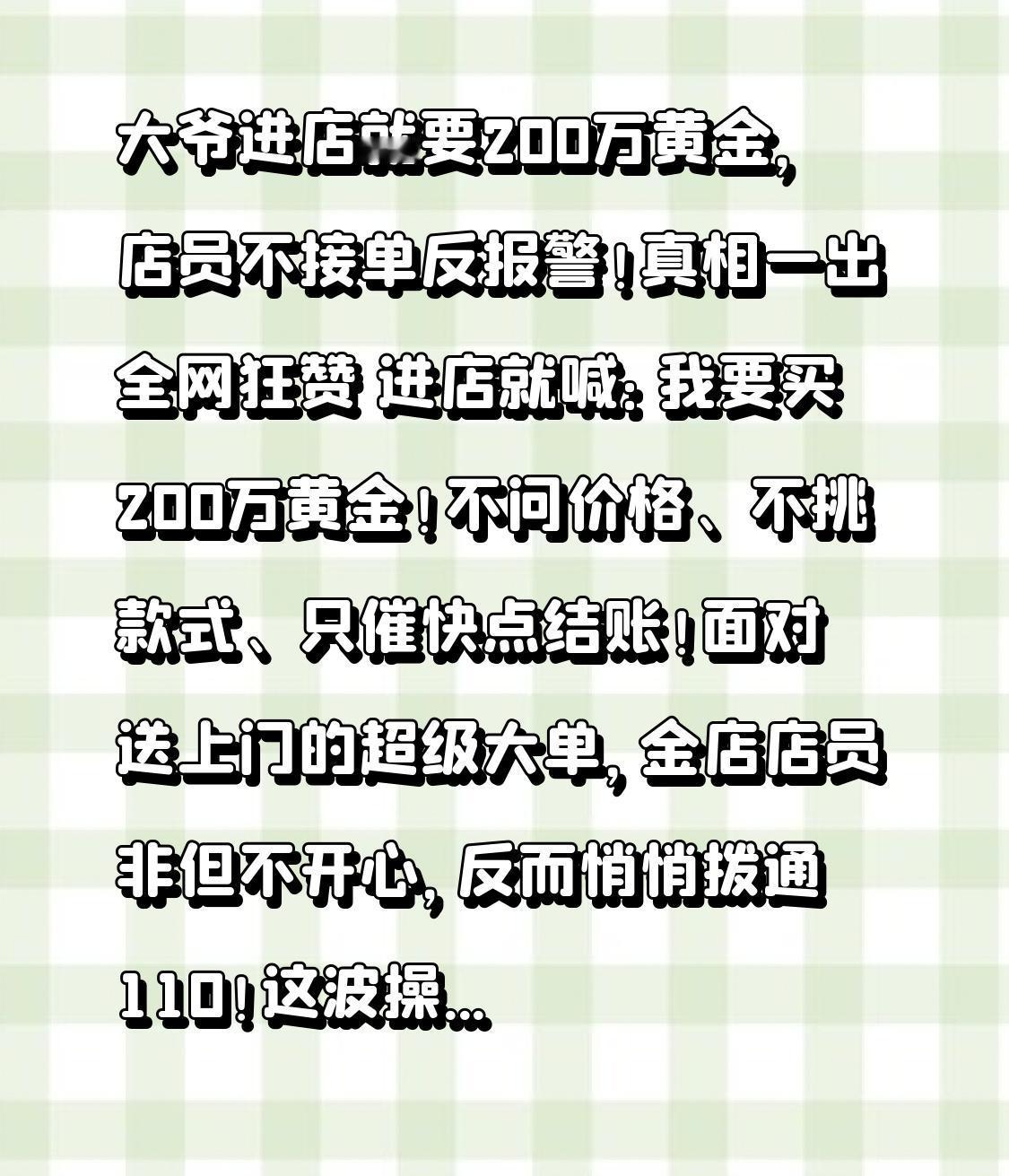 大爷进店就要200万黄金,店员不接单反报警!真相一出全网狂赞 进店就喊:我要