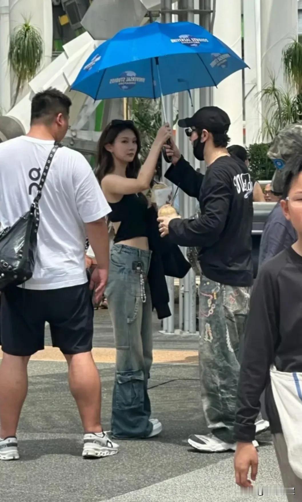 晓明哥和同伴现身新加坡环球影城,感觉他的偶像包袱好重啊。 他戴着棒球帽,穿着一件宽松黑色T恤,搭配阔腿牛仔裤,脚上踩着增高鞋,这穿搭挺时尚的。 但是有一说一,这样的穿搭一点也不适合他,既不显得年轻又不显身形,看起来有点弯腰驼背的,有点发力过猛了。 还不如他日常清爽、利落的普通穿搭好看。
