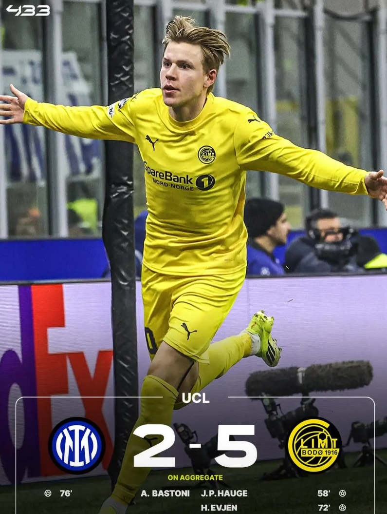 欧冠史上最疯狂的平民神话,炸了! 来自北极圈的挪威球队博德闪耀,把整个欧洲足坛都打懵了! 你敢信这是真的? 这支球队,来自人口只有5万多的小城。 主场只能容纳8000名球迷。 全队总身价才5700万欧元,连顶级豪门的零头都不到。 这是他们队史第一次踢欧冠。 结果他们直接把半个欧洲的顶级豪门,挨个揍了个遍! 看看这份震碎足坛的欧冠战绩: ✅ 2-2逼平英超劲旅热刺 ✅ 2-2逼平德甲豪门多特蒙德 ✅ 3-1掀翻瓜迪奥拉的曼城 ✅ 2-1力克西蒙尼的马竞 ✅ 主客场双杀意甲领头羊、上赛季欧冠亚军国际米兰! 总比分5-2,直接把国米踢出局,昂首闯进欧冠16强! 最离谱的是什么? 挪威联赛因为冬季严寒,早在去年11月30号就已经结束。 也就是说,博德闪耀整整3个月,没踢过一场国内联赛! 2026年开年到现在,他们所有的正式比赛,全是欧冠的硬仗! 全程以赛代练,专挑欧洲顶级豪门练手,还全给赢下来了! 更让人震撼的是: 今年1月之前,这支球队这辈子,都没赢过一场欧冠正赛! 结果短短一个多月,他们连斩曼城、马竞,双杀国米。 从欧冠小白,硬生生杀进了欧冠16强! 没有天价球星,没有顶级流量。 来自北极圈的小城球队,用最纯粹的足球,书写了欧冠史上最动人的童话。 这就是足球的魅力啊。 永远有人敢以弱胜强,永远有奇迹正在发生。 这支博德闪耀,值得所有球迷脱帽致敬! 你觉得他们在接下来的欧冠淘汰赛中,还能继续创造奇迹吗?