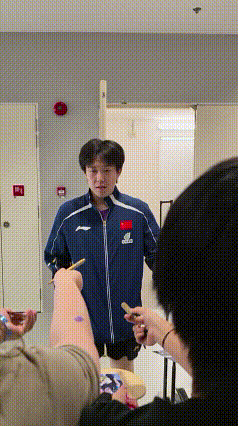 王楚钦真是秩序引导员, 昨天下训因为球迷太激动, 差点把栏杆推倒, 拿过球拍的他又放弃签名了。 今天下训, 球迷都乖乖的, 王楚钦至少签了二三十块板。 对于球迷来说, 这福利真是太棒了, 无形中就引导了秩序[大笑]。