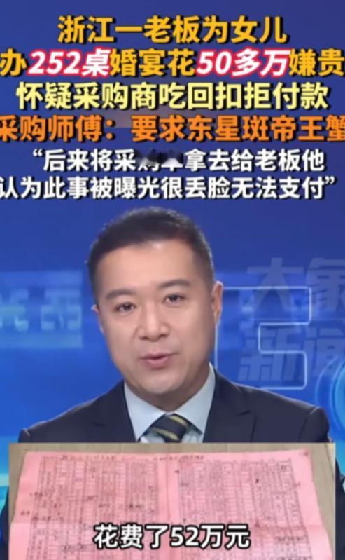 想白嫖?浙江,男子花52万给女儿办婚宴,一口气摆了252桌,可没想到,婚宴结束后,男子却以“海鲜价格虚高、质量不达标、怀疑王师傅吃回扣”为由拒付费用,不仅饭钱不给,而且连提供250多桌餐具的供应商,也没给钱!网友:不付款不是因为席太贵,而是因为没收回来钱! 这位办婚宴的钱老板,在当地商界小有名气,平日里常把“做人要大气”挂在嘴边。这次嫁女儿,他打定主意要把场面撑到极致,对外更是放话,只要能办得体面风光,预算上不封顶,不管多贵的东西,只要能撑得起场面,都可以安排上。 他找了认识十多年的猪肉商王师傅帮忙采购食材,毕竟是老熟人,王师傅也没多想,就按要求垫资52万采购了东星斑、帝王蟹这些高档海鲜,还有猪肉、蔬菜等食材,足足准备了252桌,每桌28道菜,婚宴连办三天,当时宾客吃得满意,钱老板也没说任何不妥。 可等宴席一散,王师傅上门结款时,钱老板的态度来了个180度大转弯,张嘴就说海鲜价格虚高、质量不达标,还怀疑王师傅吃了回扣,硬是一分钱不肯给。 更过分的是,不仅食材钱拖着不给,连提供250多桌餐具的供应商也被欠着钱,人家送货上门时说好货到付款,结果婚礼办完后钱老板就翻脸不认人,电话不接、人也躲着不见。 记者出面协调,建议先把没争议的十几万猪肉钱结了,钱老板口头同意后又当场反悔,后来王师傅按要求把海鲜采购原单送过去,他反而觉得事情被曝光丢了脸,更以此为借口拒绝付款。 王师傅的父母急得上门讨债,女儿也多次联系,可钱老板始终避而不见,逼得王师傅只能请律师打官司,连餐具供应商也跟着遭殃,只能眼睁睁看着自己的货款打了水漂。 要说这事儿里最让人恶心的,就是钱老板的两面三刀。当初求着人家帮忙办体面婚礼,说什么预算不封顶,等人家真的按要求把场面撑起来了,转头就想白嫖,找的理由简直站不住脚。 海鲜是他自己要求的高档货,东星斑、帝王蟹本来就不便宜,252桌下来52万,平均一桌两千出头,在浙江当地的婚宴标准里根本不算离谱,而且食材送过去的时候,钱老板那边有专人称重验货,当时没提任何质量问题,宴席上宾客也吃得好好的,怎么到结账就是质量不达标了?说白了就是不想给钱,找个借口罢了。 他还要求王师傅提供供货商的成本价单据,想按成本价加20块结算,这简直是强人所难,进货价是人家的商业机密,哪能随便对外透露?再说王师傅跑前跑后垫资那么多,就赚点辛苦费,要是真吃回扣,也不敢光明正大地把采购原单拿出来。 网友说得一点没错,钱老板不付款根本不是因为席太贵,就是因为礼金没收回来,自己想撑面子办豪华婚宴,结果收的礼没达到预期,就想把损失转嫁给供应商。 这种行为真是又自私又无耻,做生意的人最讲究诚信,他倒好,为了赖账连十多年的老交情都不顾,平日里说的“做人要大气”全是骗人的空话,说到底就是个爱面子又输不起的主儿。 他以为赖掉这笔钱就能省下来,殊不知丢的是自己的名声,以后谁还敢跟他合作?连办婚宴这种人生大事都能赖账,可想而知平时做生意有多不靠谱。 更让人难以接受的是,这种行为不仅坑了王师傅,还连累了无辜的餐具供应商。人家只是按约定提供餐具,没招谁没惹谁,就因为钱老板的赖账,辛苦钱拿不到,还要自己花钱雇人回收餐具,真是倒了八辈子霉。 后来法院的一审判决也说明了一切,法院综合考虑证据和当地宴席的市场价格,判决钱老板支付44.7万元货款和逾期利息,这就证明王师傅的采购价格是合理的,钱老板的那些理由根本站不住脚。可即便如此,钱老板大概率还会上诉,说到底就是不想认账,这种死皮赖脸的劲头,真是让人佩服不起来。 说到底,钱老板的行为就是典型的耍赖,为了自己的利益,不顾别人的死活,把老交情、诚信都抛到脑后。这种现象真的很让人反感,也给所有做生意的人提了个醒,不管关系多好,涉及大额资金往来,一定要签订书面协议,明确双方的权利义务,避免遇到钱老板这种耍赖的人。 同时也希望所有生意人都能坚守诚信底线,答应的事就要做到,欠别人的钱就要还清,别让“做人要大气”变成一句可笑的空话。