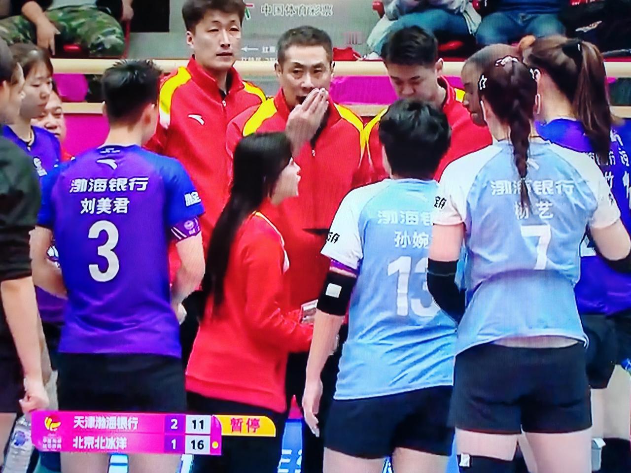 2月25号女排排超联赛季后赛,天津女排对阵北京女排,前三局天津女排25:11,23:25,25:21,大比分2:1。 比赛进入第四局,天津女排6:8落后,王艺竹扣球得分7:8,今天王艺竹打主攻,刘美君打接应,北京女排扣球得分7:9,王艺竹二号位扣球得分8:9,今天王艺竹扣球发挥出色。王艺竹发球,王云蕗吊球得分8:10,邹佳琪发球得分8:11,娜塔莉娅一传失误了。邹佳琪发球,刘美君扣球出界8:12,法布里斯吊球得分8:13,天津女排换上张世琦,邹佳琪发球失误9:13,张世琦发球,金佳宝快球出界10:13,张世琦发球,王云蕗扣球得分10:14,王云蕗发球,马丁快球得分11:14,刘美君发球,金佳宝快球得分11:15,金佳宝发球,北京队扣球得分11:16,天津女排叫了第二次暂停。天津女排 女排全国联赛 北京女排