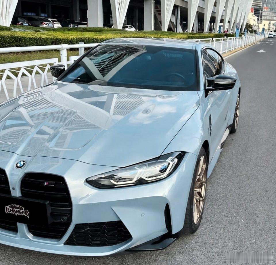 这台宝马M4雷霆版,浅蓝哑光车漆搭配碳纤维车顶,低趴宽体气场十足。金色锻造轮毂与红色M卡钳,把性能美学拉满。S58直六双涡轮引擎爆发530马力,四驱版3.5秒破百,既能优雅通勤,也能在赛道释放猛兽本能。大v聊车