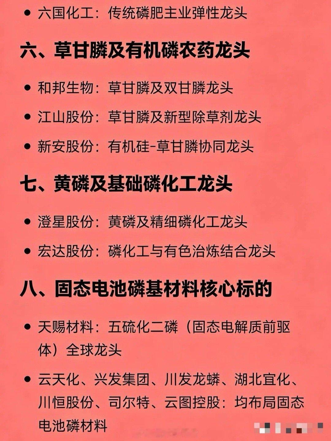 • 澄星股份:黄磷及精细磷化工领域的龙头企业。